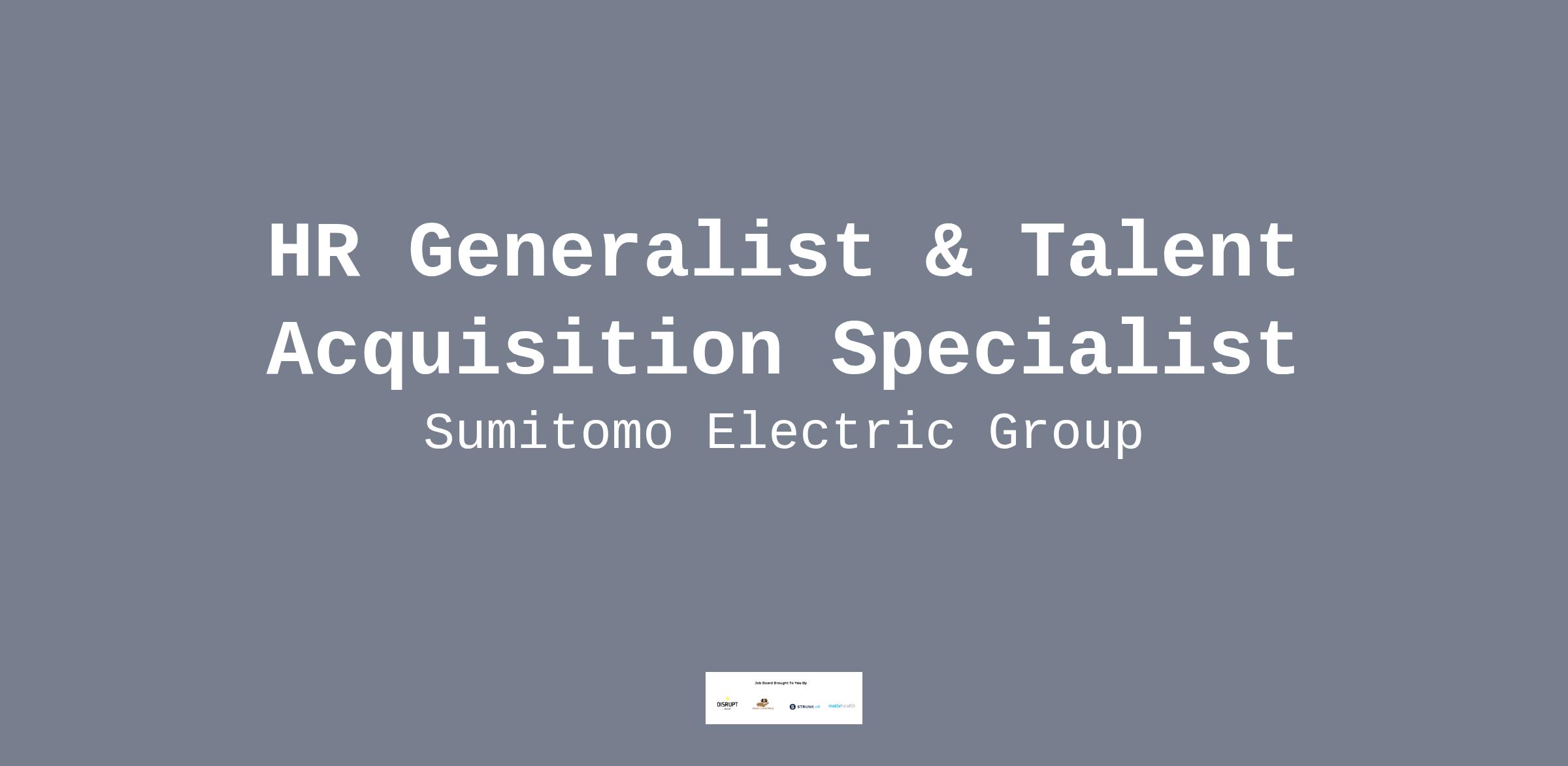 Sumitomo Electric Interconnect Products, Inc., a Sumitomo Electric Group company, is looking for a HR Generalist & Talent Acquisition Specialist.