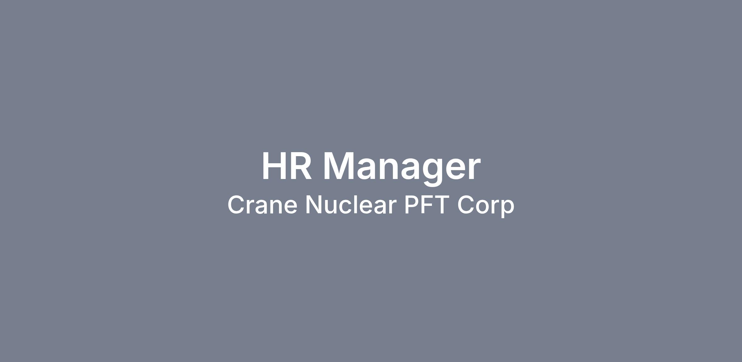 Position: Human Resource Manager (HR) Business Unit: Nuclear
