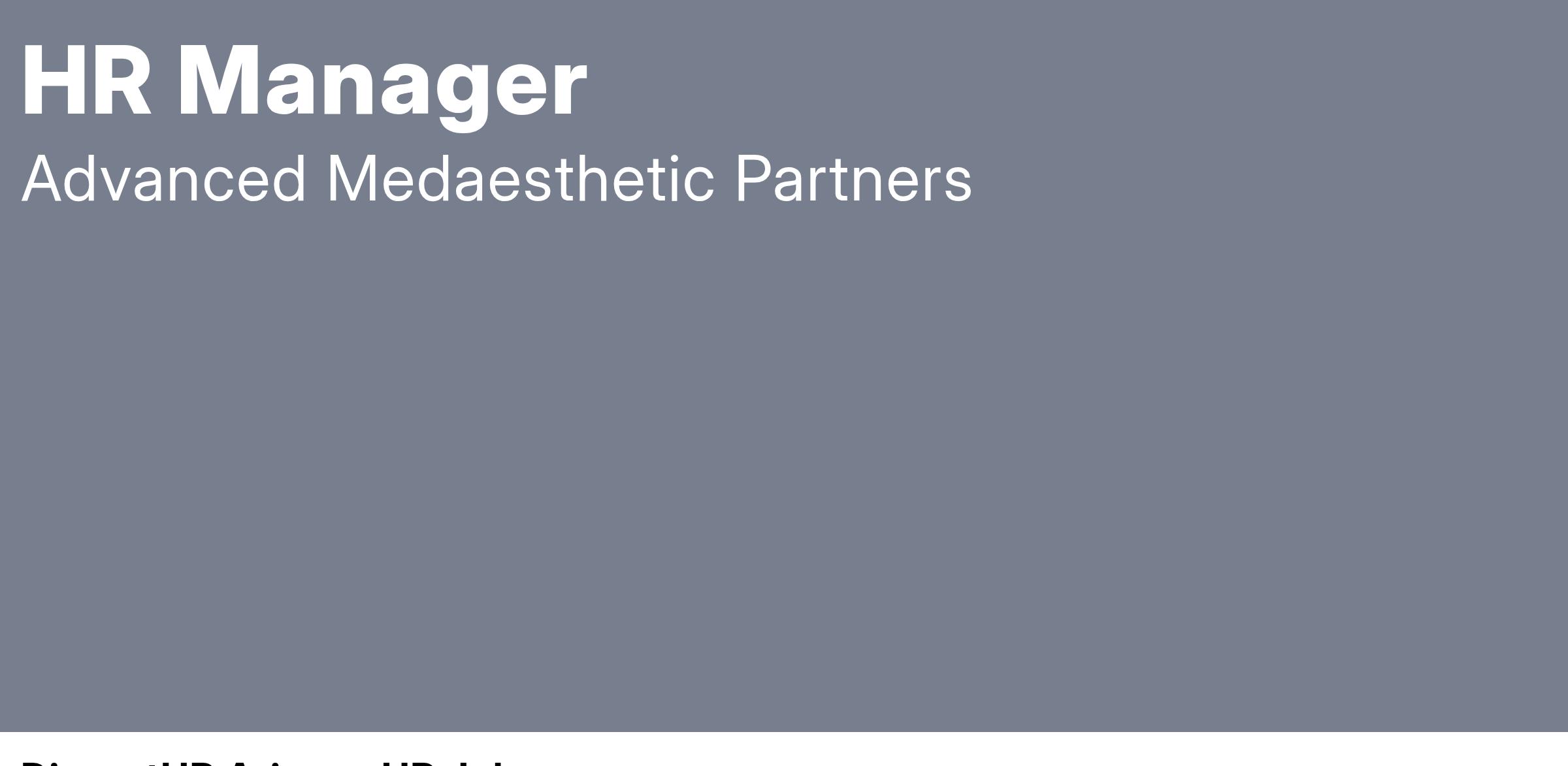 At Advanced MedAesthetic Partners, we’re not just checking the HR box—we’re redefining how HR partners with the business to drive real impact. As we continue to grow, we’re looking for a Human Resources Manager who’s eager to contribute, collaborate, and create. This is your chance to shape policies, develop best practices, and truly influence the employee experience in a high-growth organization.