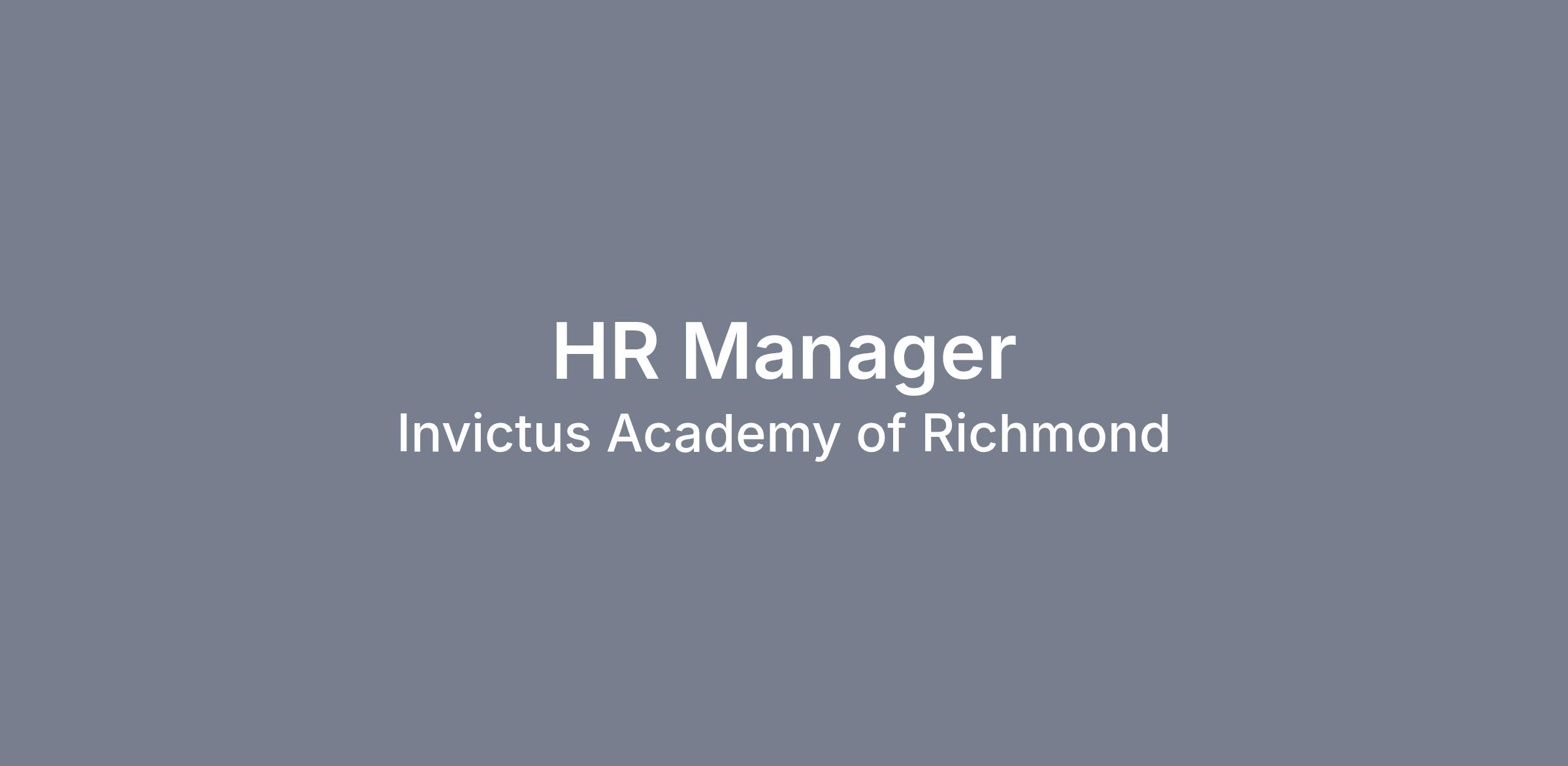 Invictus Academy is a high performing independent public charter school located in El Cerrito, and we are seeking an HR Manager who wants to join our team and create an exceptional school.