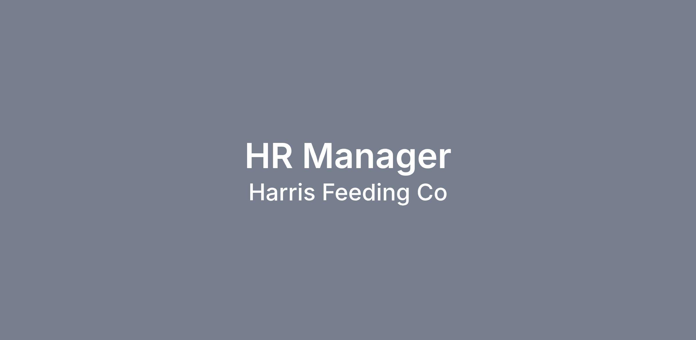 Harris Feeding Company is an Equal Opportunity Employer. Candidates are evaluated and selected based on their qualifications for the job in question. We do not base our employment decisions on an employee's or applicant's citizenship, race, age, color, sex, religion, natural origin, sexual orientation, handicap, or disability, marital status, veteran status, reproductive health decision-making, or any other basis prohibited by local, state, or federal law.