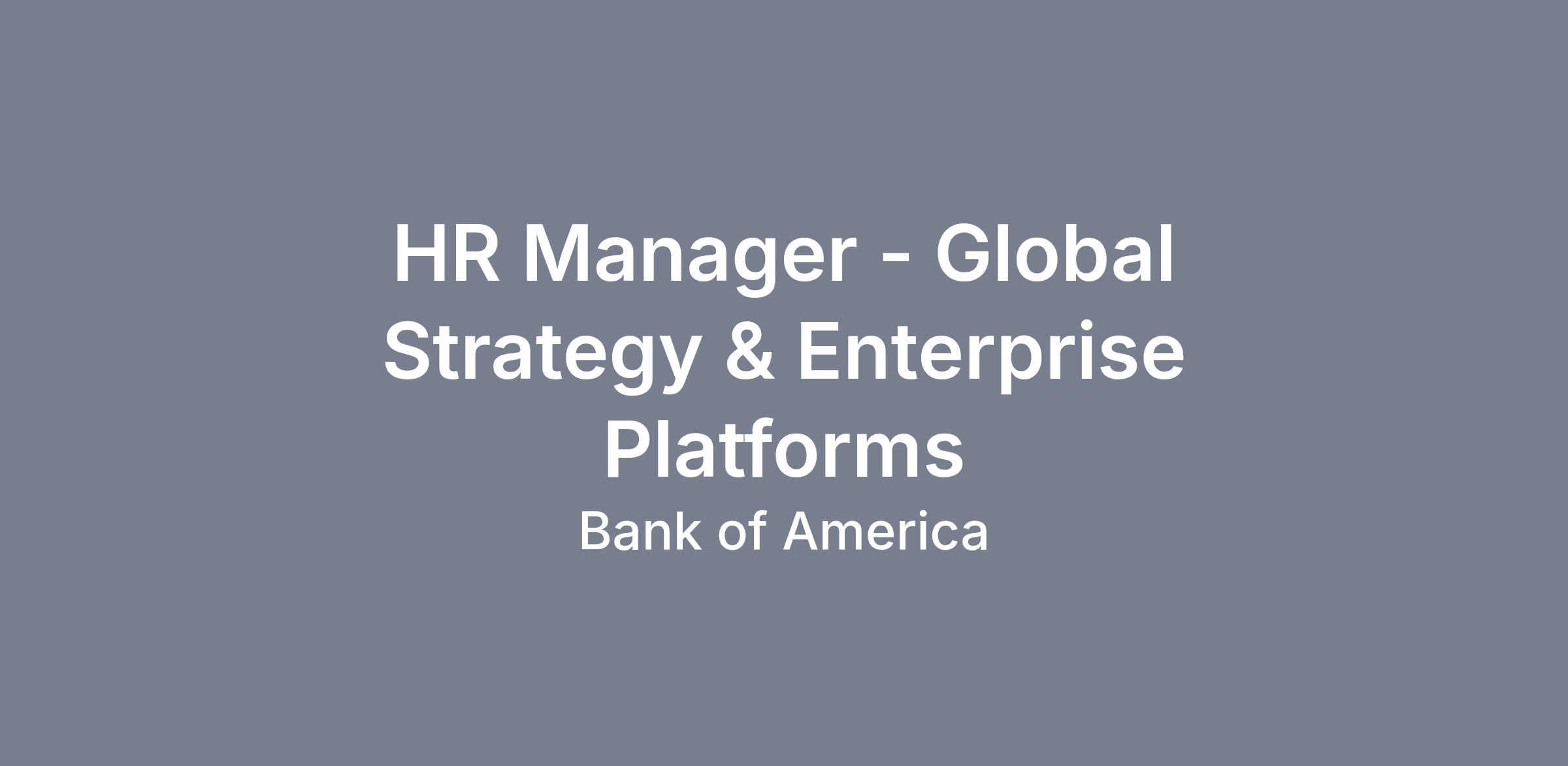 The Human Resources Manager will be a member of the Global Strategy & Enterprise Platforms HR team.