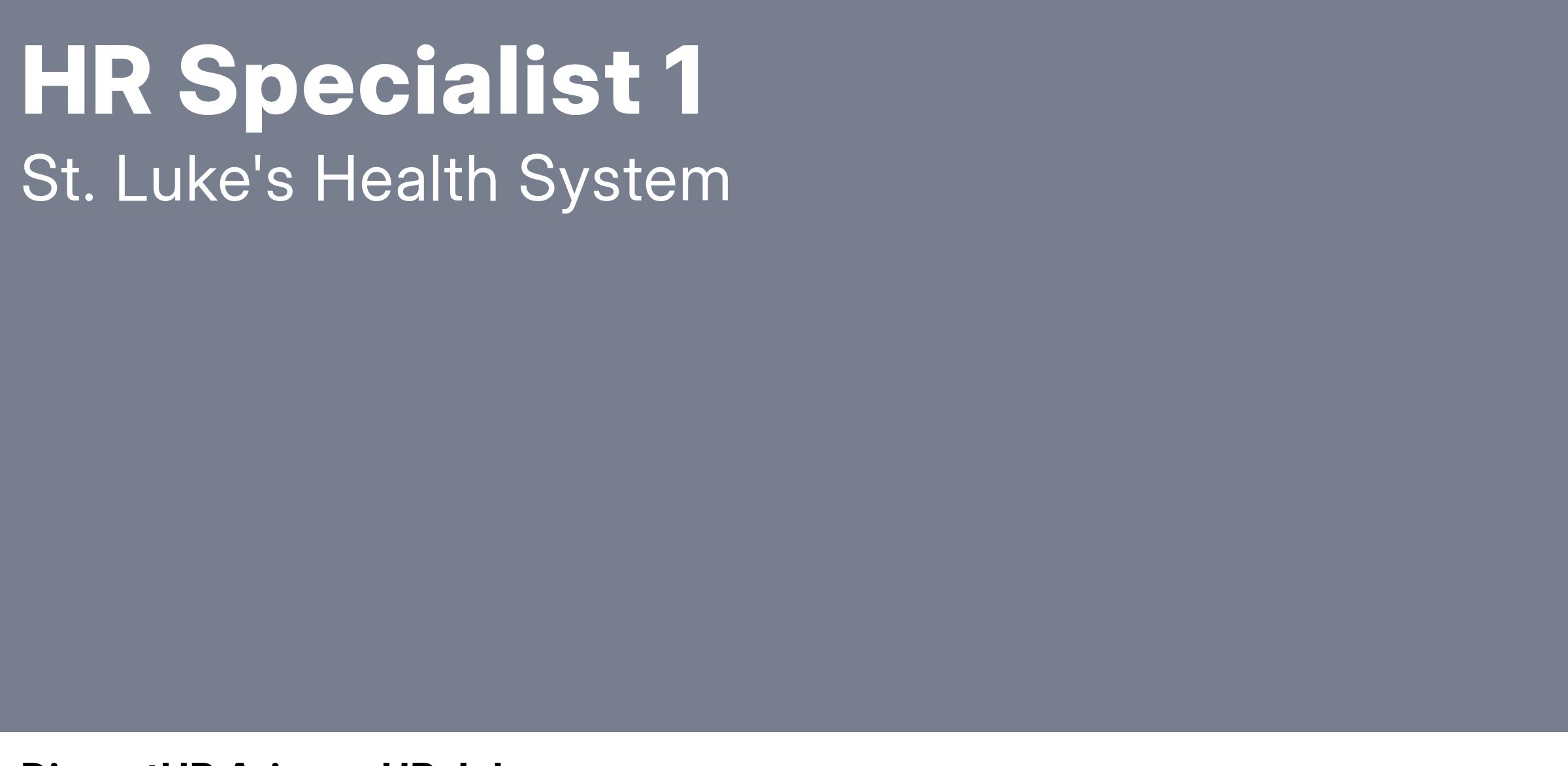 St. Luke's Health System in Boise, ID is looking for an HR Specialist 1 to join our HR Operations team. Under moderate supervision, the Human Resources Specialist 1 uses a specialized body of knowledge to support the daily functions of various HR programs, including assisting and educating employees and/or leaders.