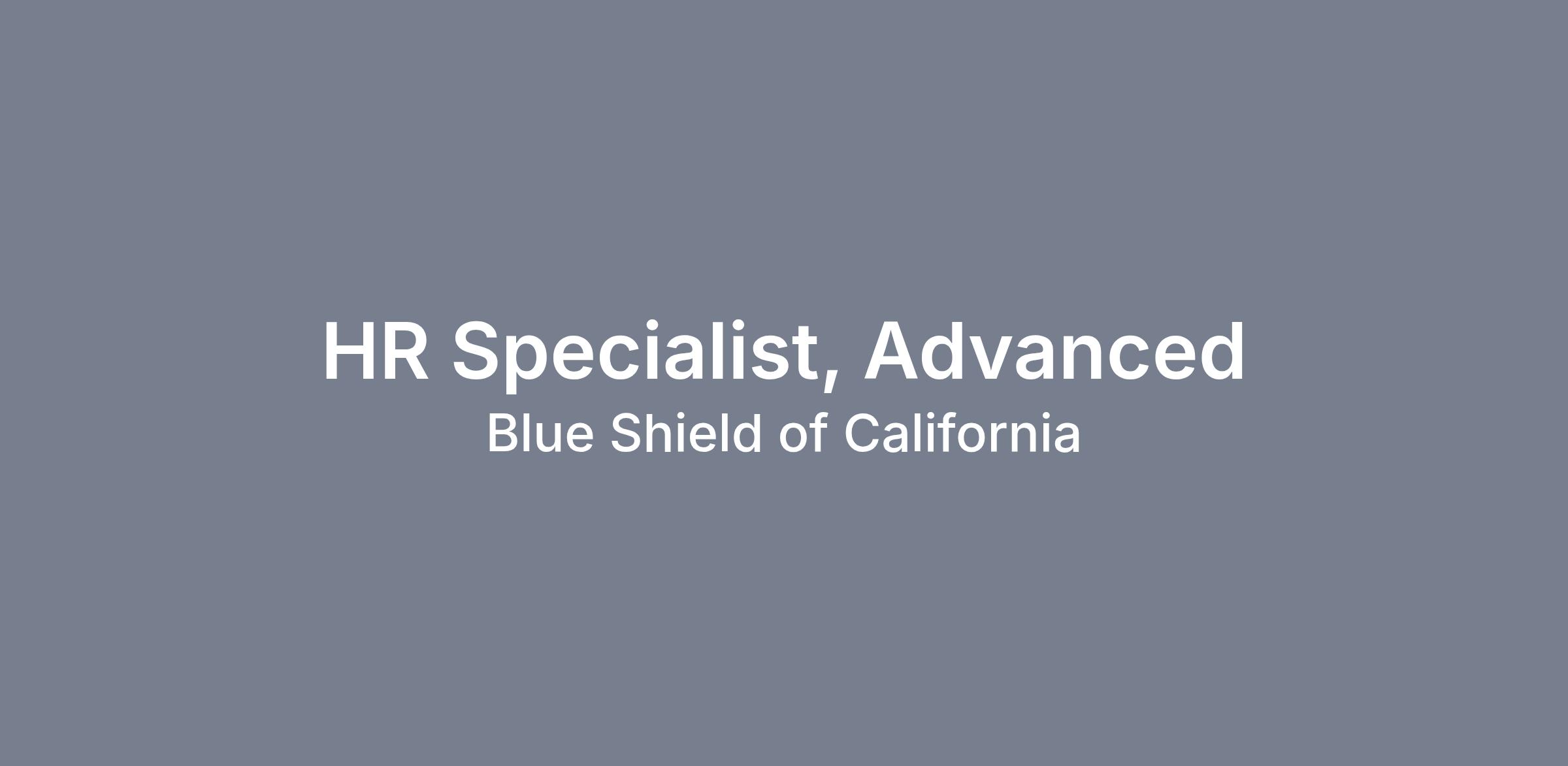 The People & Engagement HR: Connect team is a critical part of Human Resources service delivery for all of Blue Shield of California (BSC) The team provides first level support to all BSC employees on a daily basis for both daily operations and employee-facing initiatives. The HR Specialist, Advanced will report to the Manager, HR:Connect. In this role you will be assisting all employees on all things Human Resources through enabling self-service, providing phone, chat, and case-based support in addition to executing employee lifecycle transactions.