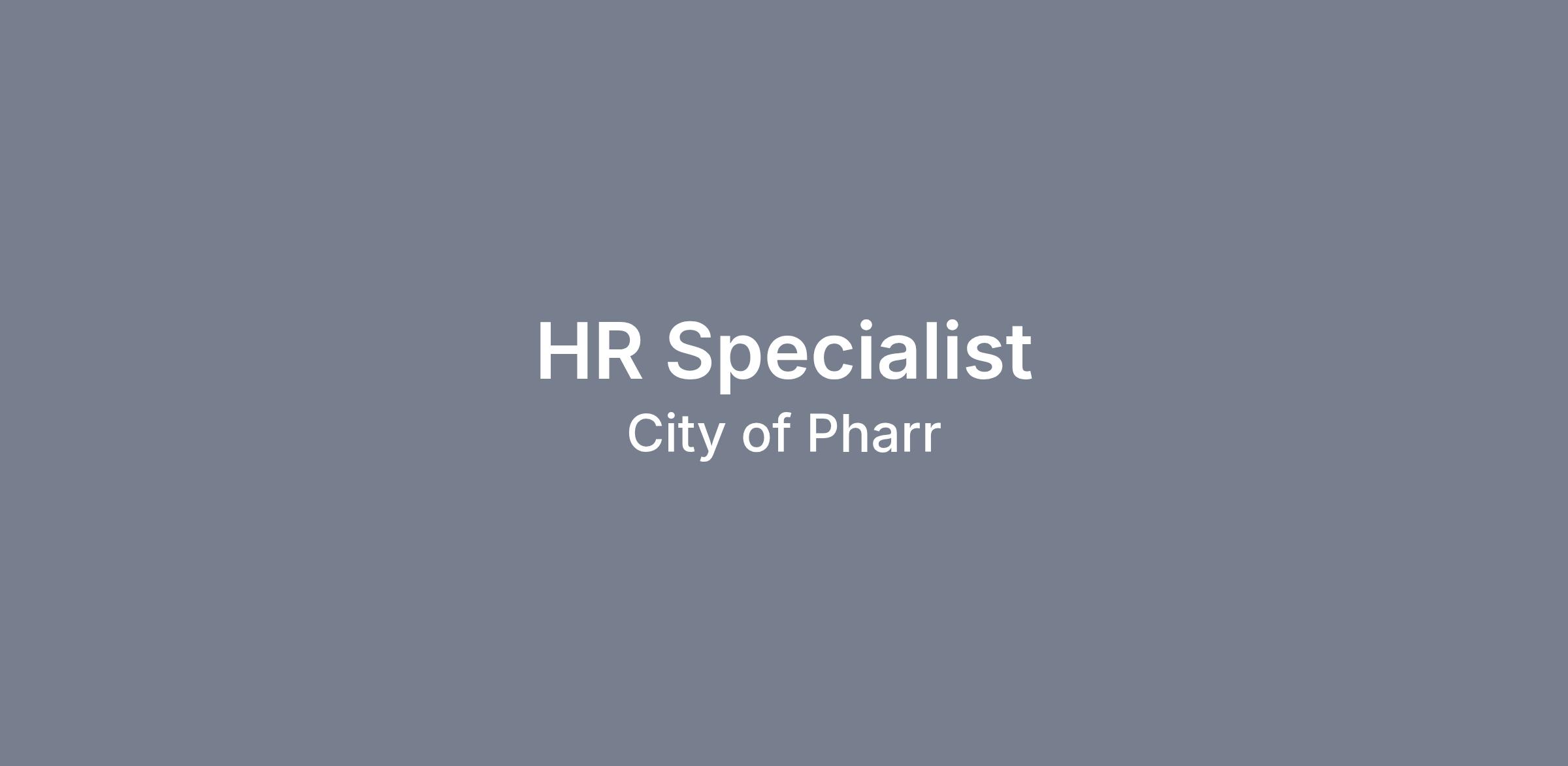 Join the City of Pharr as a Full-Time HR Specialist and be part of a dynamic team dedicated to shaping the future of our community. This onsite role in Pharr, TX, offers a unique opportunity to engage directly with employees and drive innovative HR initiatives in a customer-centric environment. With a competitive salary of $40,000.00, you will play a vital role in solving HR challenges while fostering an energetic workplace culture.