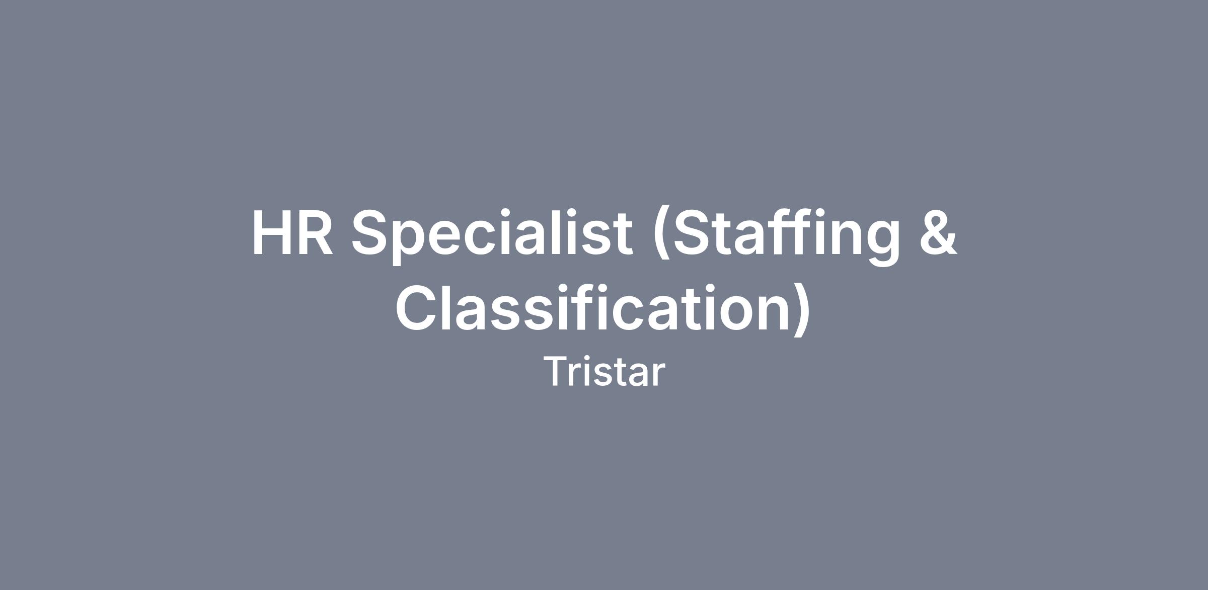 TRISTAR is seeking a highly skilled Human Resources Specialist to provide expert-level staffing, classification, and HR program support within the Human Resources Division. This position supports the execution of the Human Capital Strategy for a highly technical workforce operating under the NAVSEA Demonstration Project (DEMO) pay system. The selected candidate will serve as a Department Human Resources Specialist for their assigned department. They will be the first-line point of contact for their customer and will operate as a subject matter expert in federal staffing and classification, workforce planning, HR systems management, and regulatory compliance under Title 5 U.S.C., advising leadership and ensuring accurate, efficient HR program execution. This is not a primarily administrative role. The position requires analytical expertise, regulatory knowledge, process management skills, customer relations skills, teaming skills, and independent professional judgment.
