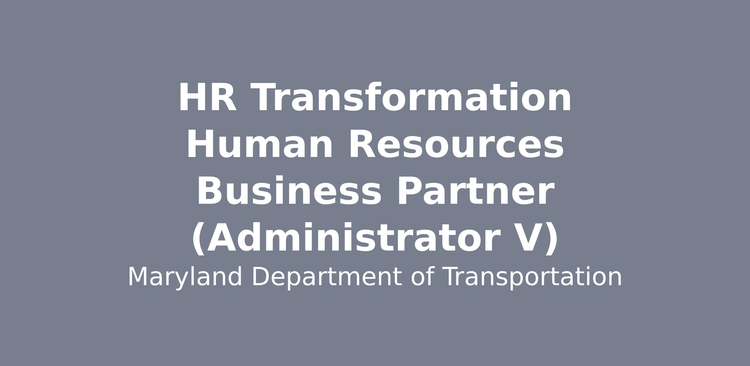 The Maryland Department of Transportation, The Secretary’s Office (MDOT TSO) is seeking to hire a strategic and operational practitioner with an integrated approach to serve as our HR Transformation Human Resources Business Partner (HRBP) (Administrator V). The HR Transformation HRBP (Administrator V) is responsible for planning, improving, and implementing changes to the policies, processes, and tools that define how Human Resources functions, enhancing both HR operations and the overall employee experience. The incumbent will integrate three core disciplines, project management, process improvement, and change management, to deliver end-to-end transformation of HR functions. This role will lead enterprise-wide initiatives that modernize and standardize HR practices across all modes, with an emphasis on efficiency and centralized solutions.