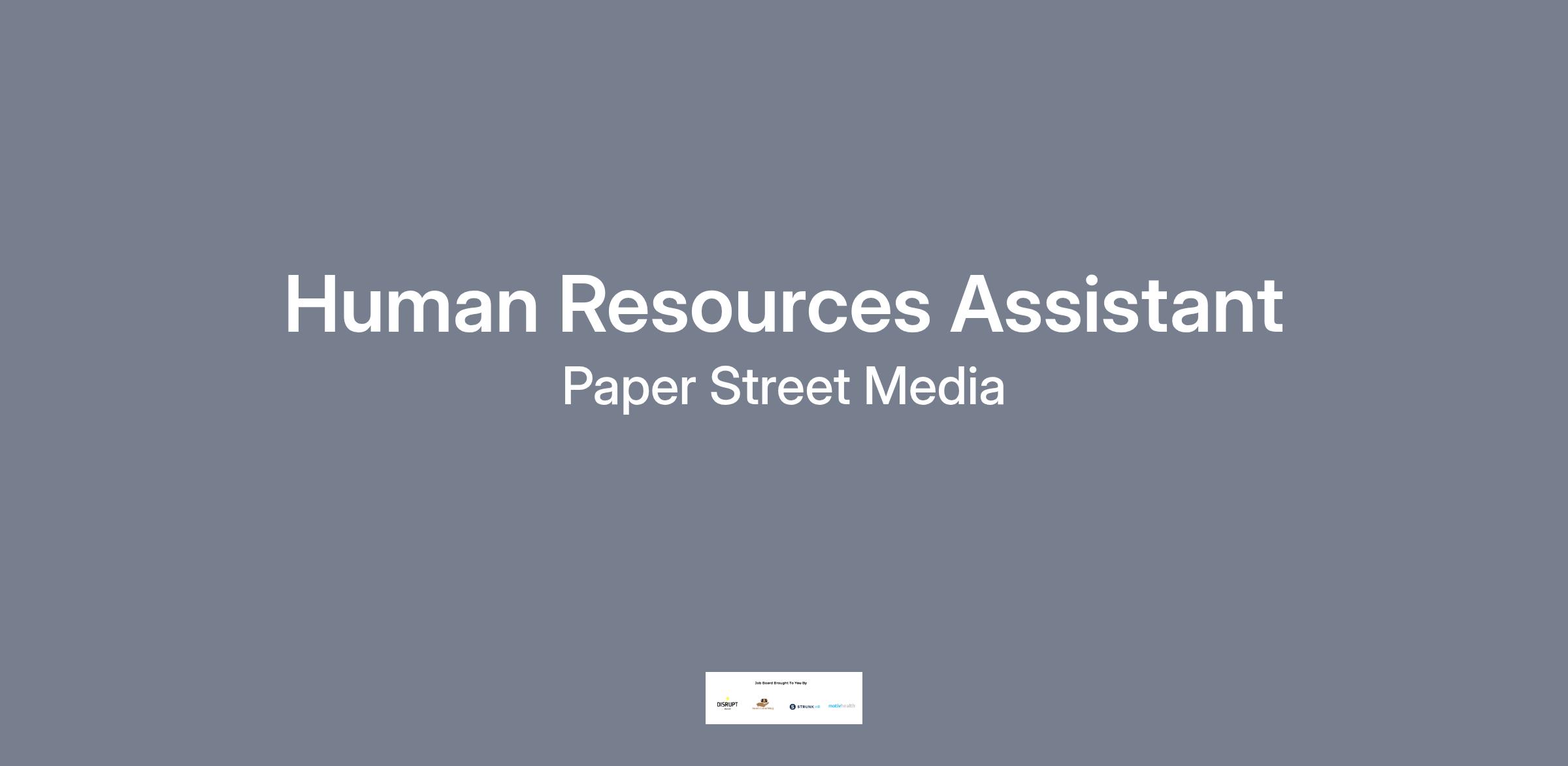 What we are looking for - Paper Street Media, LLC is hiring for a FULL-TIME Human Resources Assistant. The primary role of the Human Resource Assistant is to help with various functions of the Human Resource department, including recruitment, benefits administration, employee relations, and HRIS admin. To be a competent HR Assistant, you should be detail-oriented, patient, and compassionate, have excellent listening skills, and be able to multitask effectively. This job is a IN-OFFICE position.