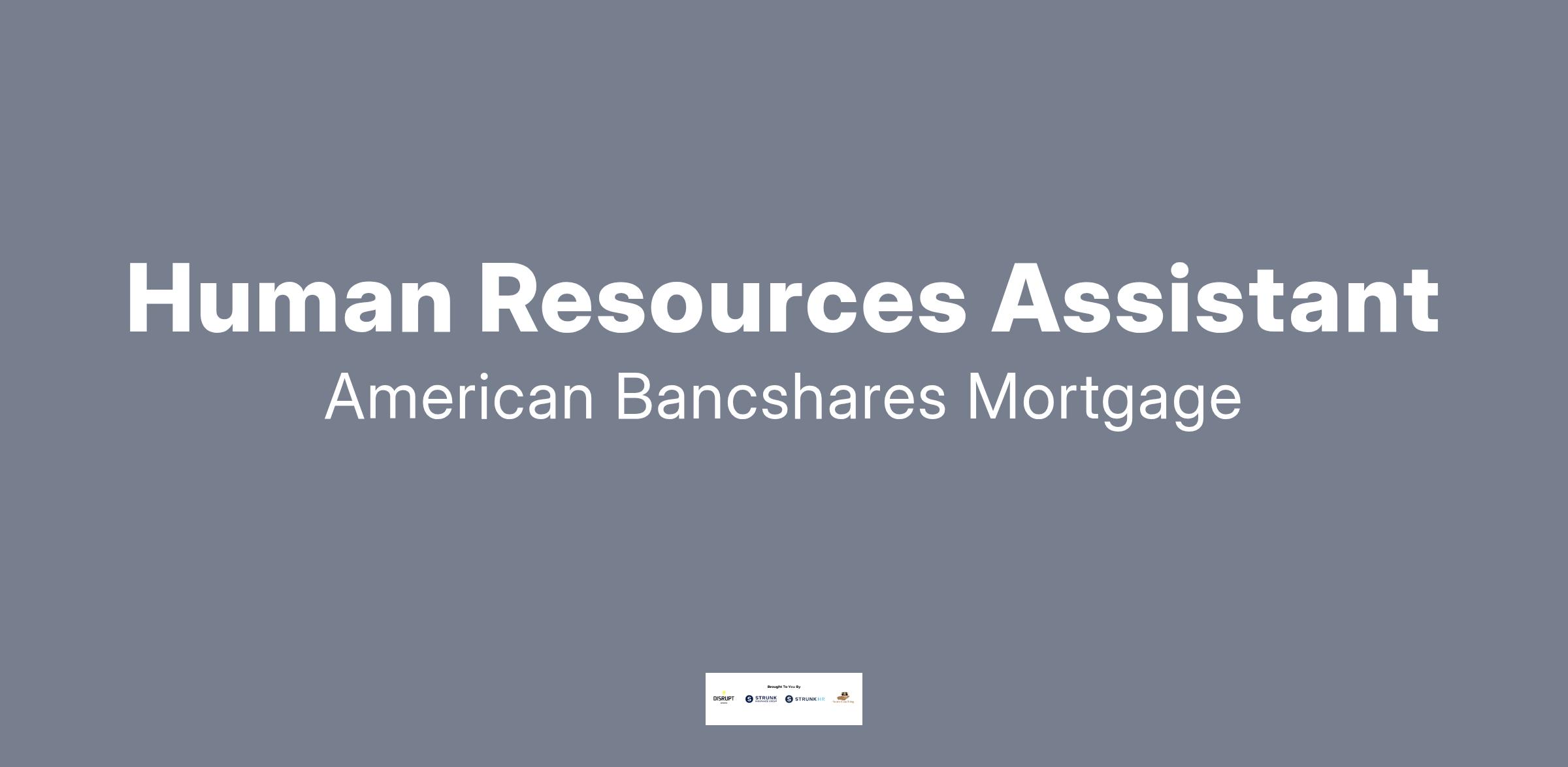 American Bancshares Mortgages is seeking a dilligent and resourceful Human Resources Assistant to be responsible for leading various human resources functions for a fast-paced and high-performing mortgage lender. As the Human Resources Assistant, you will be the main liaison between our outsourced HR Service Provider and our operations team.
