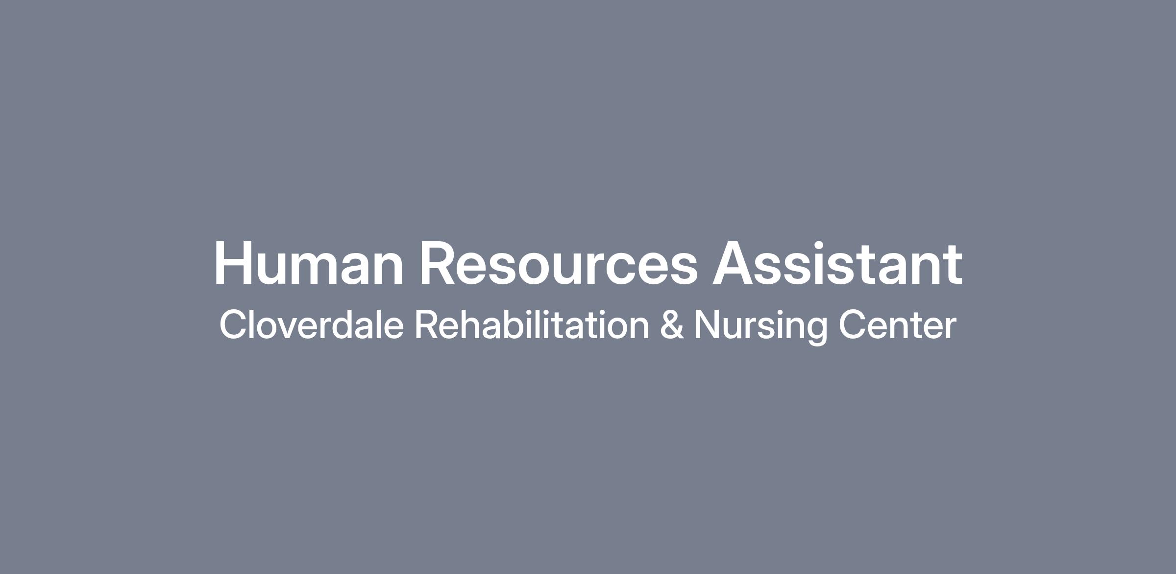 Cloverdale Rehabilitation and Nursing Center offers a supportive work environment and opportunities for professional growth and development. If you are a proactive and customer-focused individual with a passion for human resources, we encourage you to apply for the Human Resources Assistant position and become part of our team dedicated to excellence in senior care.
