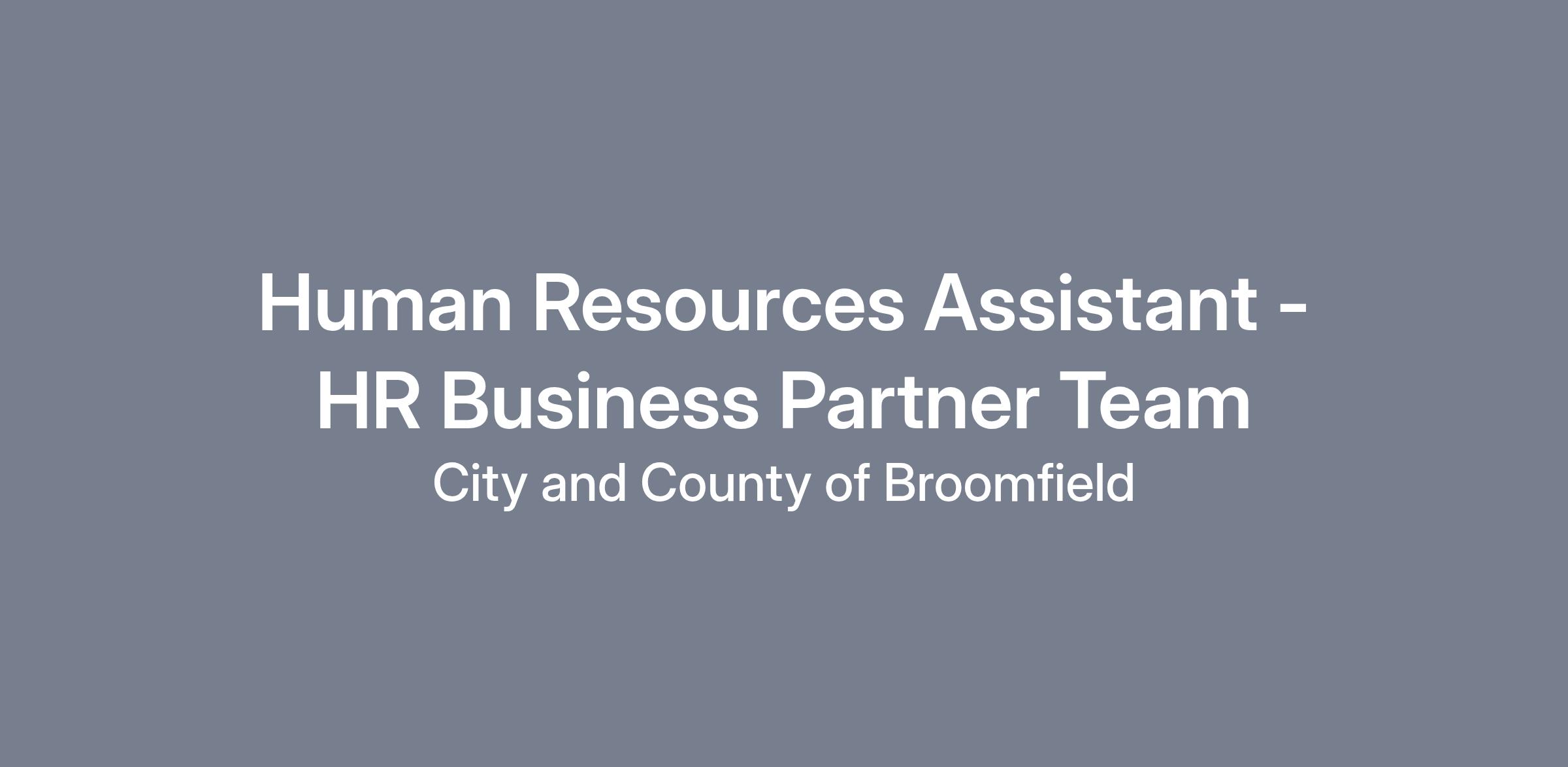 Are you a detail-oriented HR professional with experience supporting an HR Department. The City and County of Broomfield Human Resources is looking for an experienced HR Assistant to support a busy team of HR Business Partners. The HR Business Partners are responsible for all Talent Acquisition, Talent Management (Performance Management and Employee Relations), Compliance, and Employee Engagement. This position reports directly to the Deputy Director of HR and works alongside four HR Business Partners and a Recruiter.