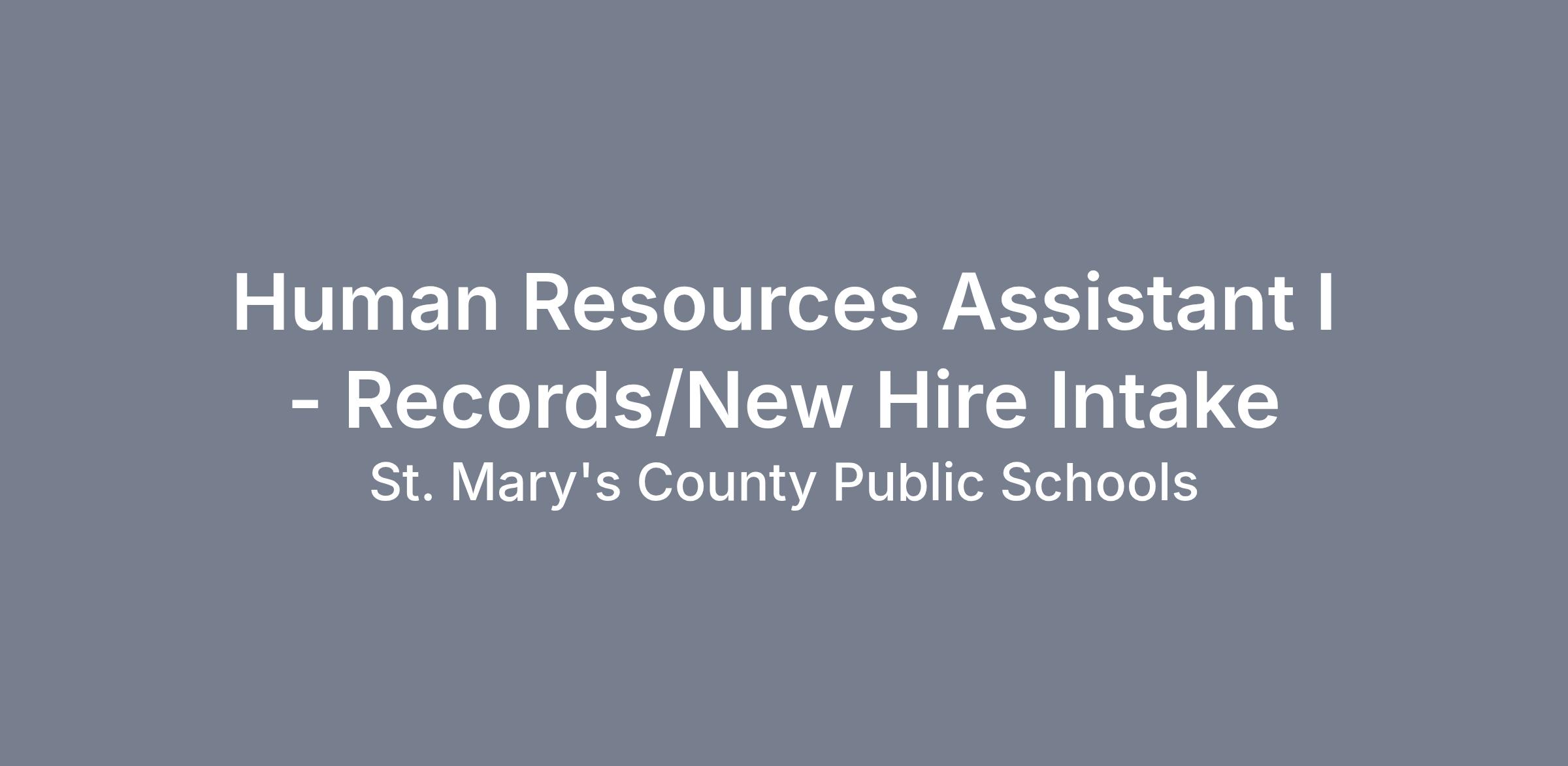 Position: Human Resources Assistant I - Records/New Hire Intake