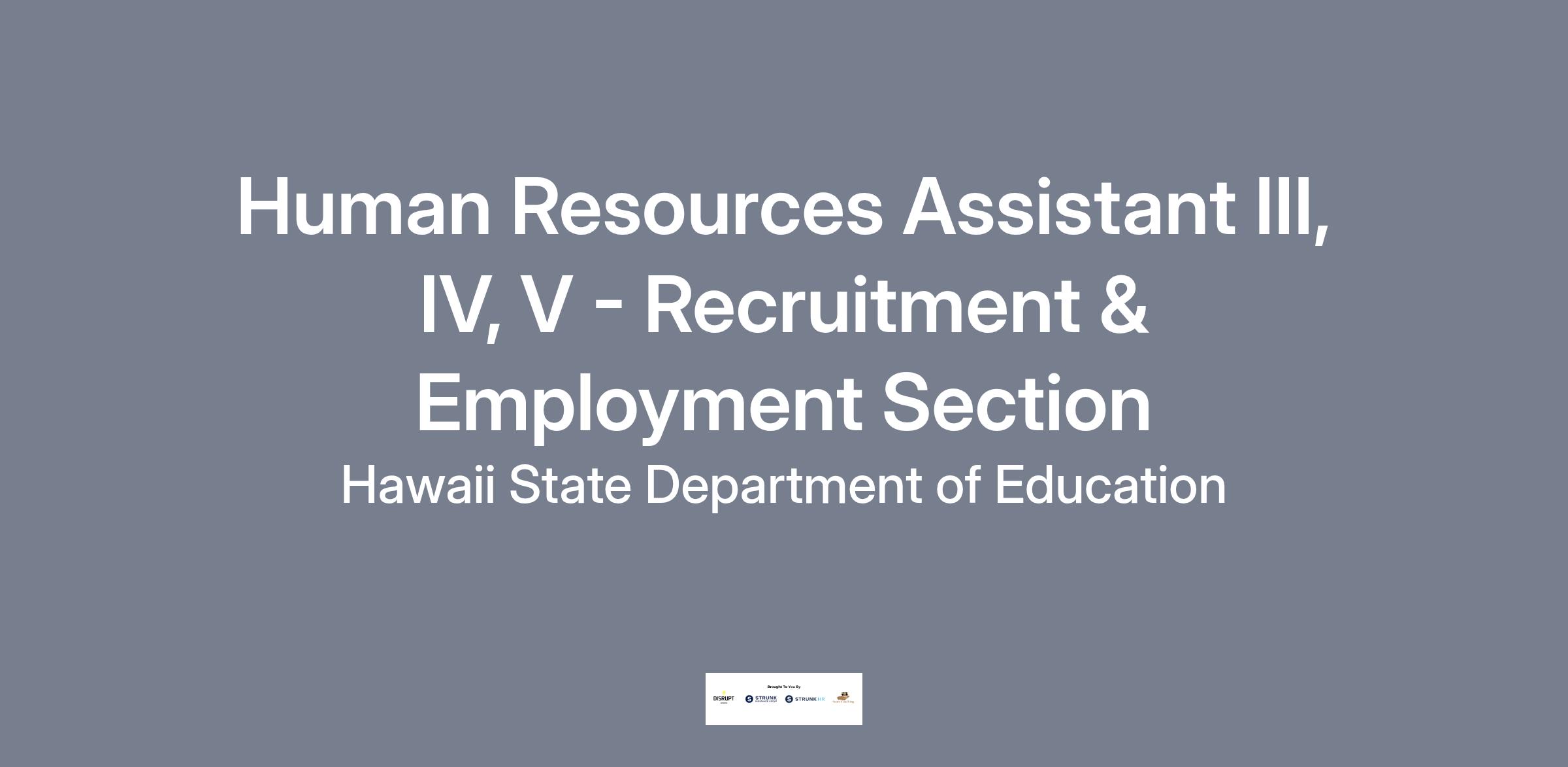 Human Resources Assistant V, SR-13: $3,900.00 per month