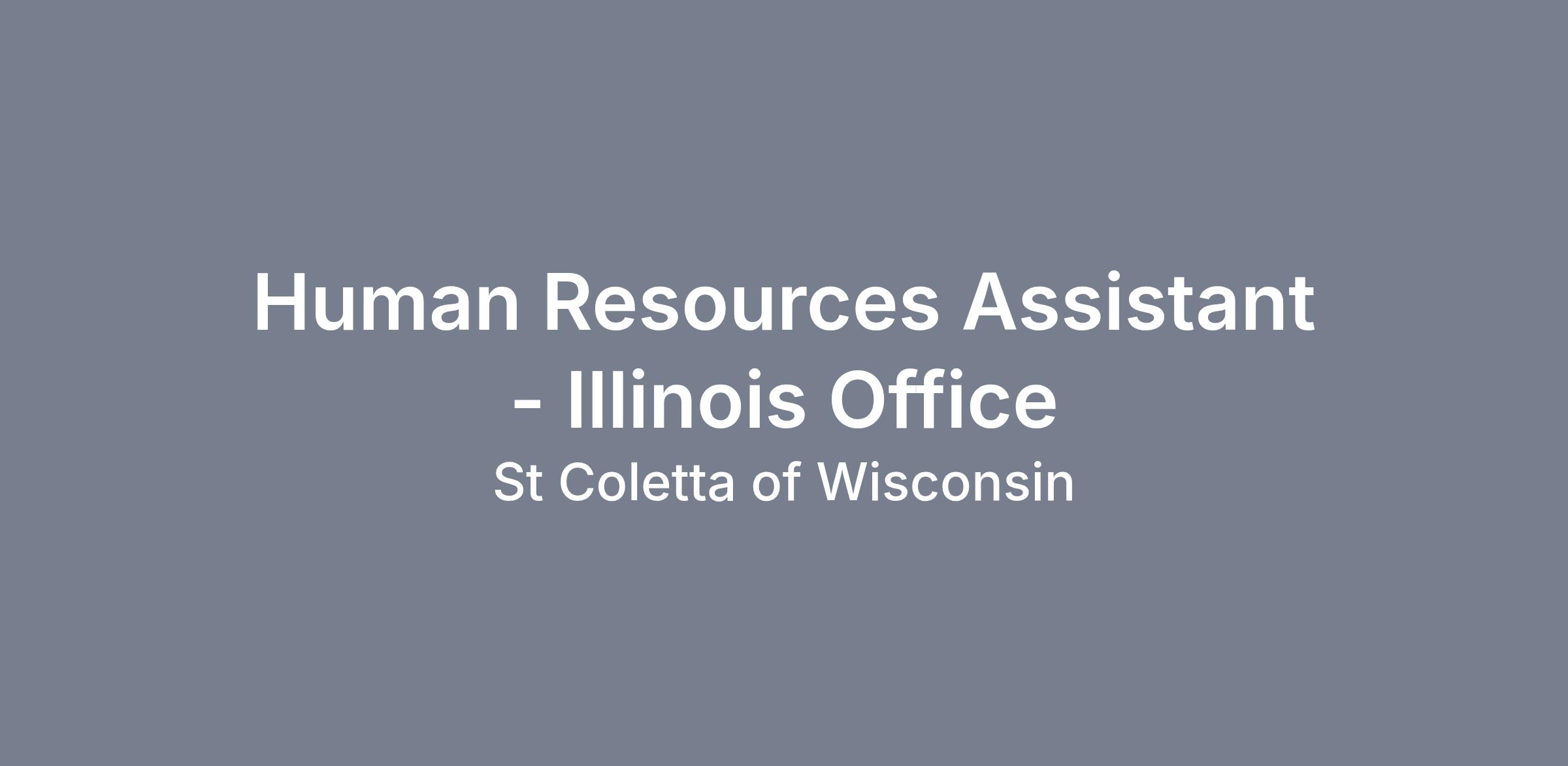 Summary: Supervised by the Director of HR and under the direction of the Illinois HR Generalist, the Human Resources Assistant for our Illinois Office serves as a contact for employees and leaders fielding general Human Resource related questions and needs. The HR Assistant is responsible for supporting the HR Generalist by providing support with various HR functions including but not limited to: talent acquisition, benefits, training and development, event support, data entry, drafting communications, running reports, maintaining equipment and keeping supplies stocked.