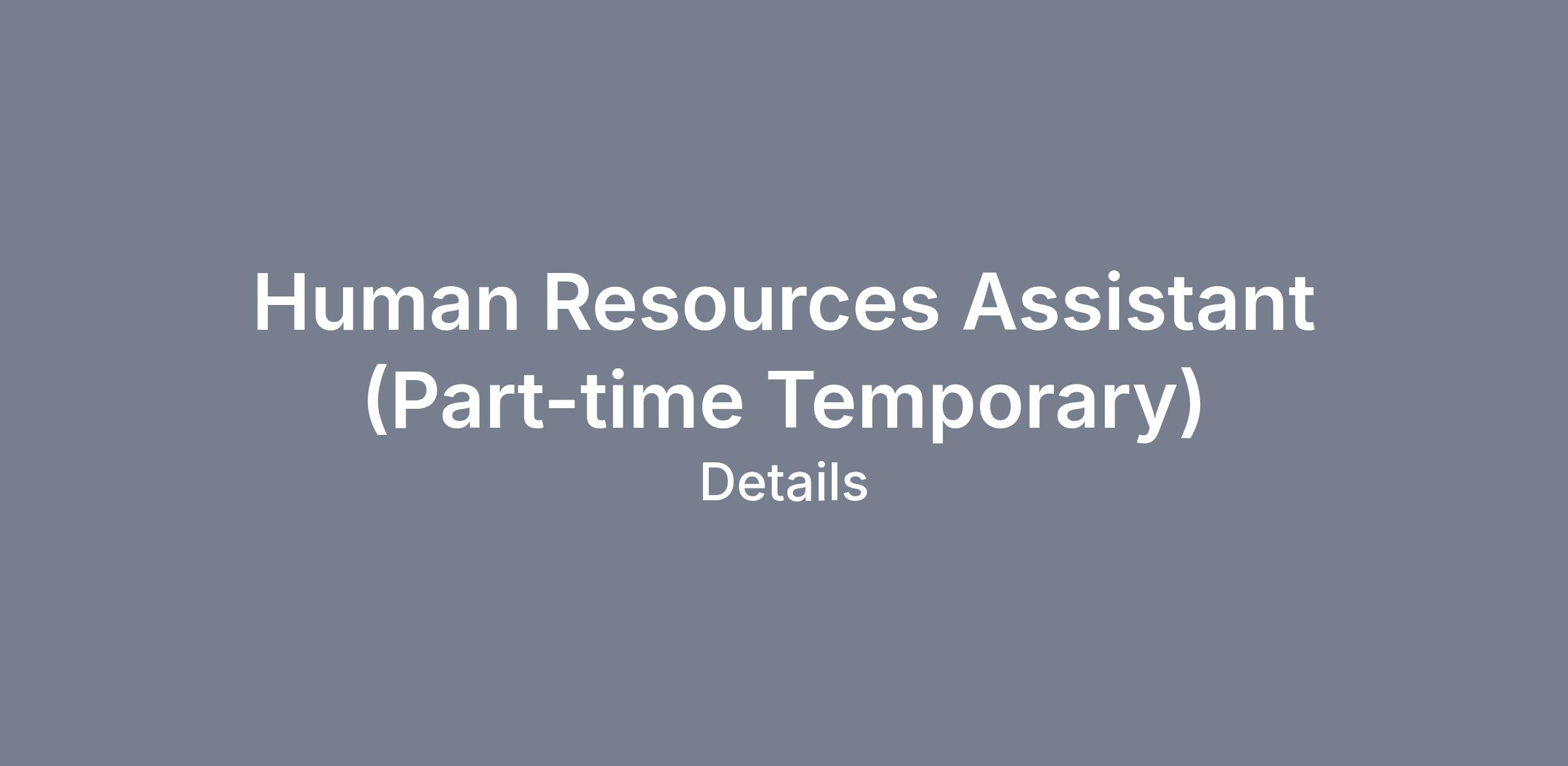 | Position Title: | Human Resources Assistant (Part-time Temporary) | |
