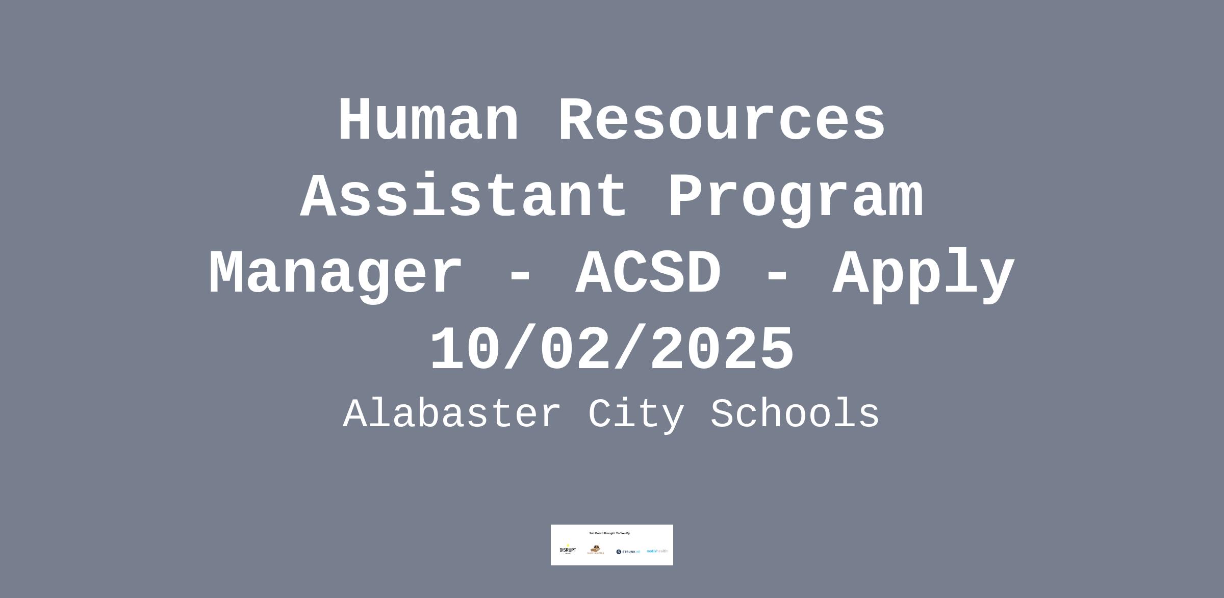 JOB TITLE: HUMAN RESOURCES ASSISTANT PROGRAM MANAGER