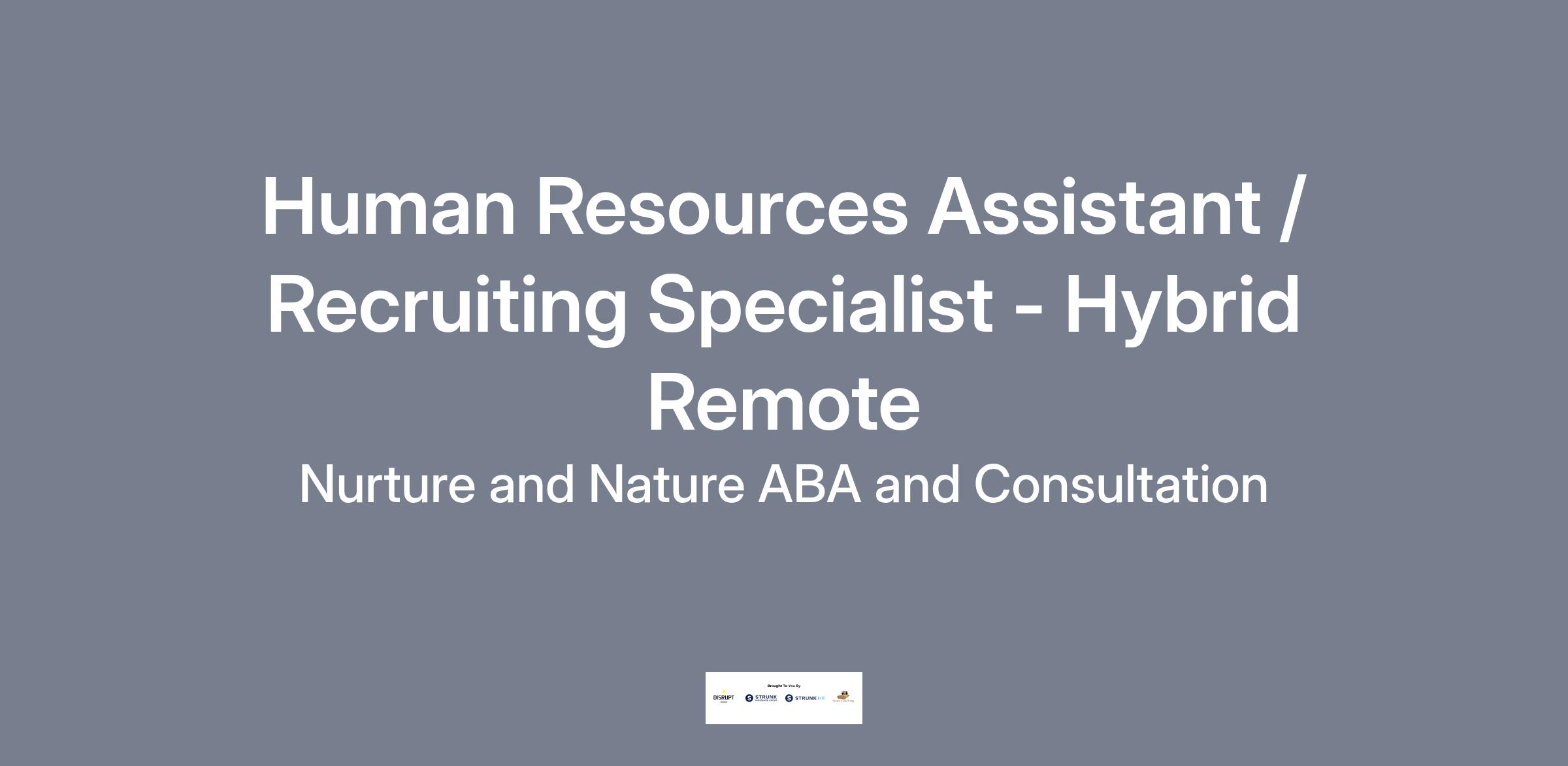 We are looking for a consistent and compassionate HR Recruiting Specialist or HR Assistant. Nurture & Nature ABA and Consultation is seeking to hire a self-motivated, efficient, responsible individual to join the Human Resources Team. The Recruiting Specialist will be in control of a variety of tasks, including owning a number of different personnel related administrative tasks. As a Recruiter, you will play an integral role in the company's long term growth by supporting our HR Director and team. This is a great opportunity for an experienced recruiter to join a growing practice through remote work.