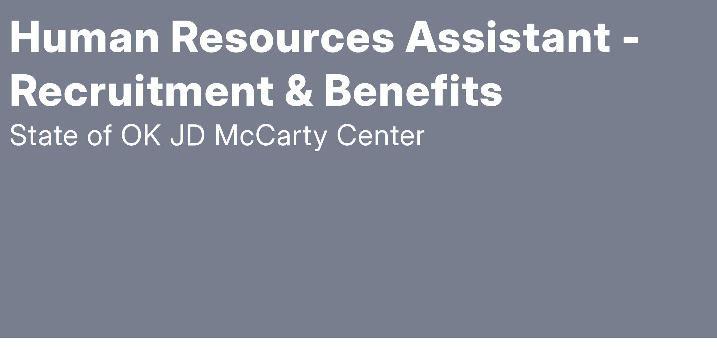 J.D. McCarty Center is looking for a Human Resource Management Specialist to assist with employee benefits, recruitment and on-boarding. Must be organized and have excellent communication, grammar, and strong phone etiquette skills. Candidate should be detailed driven and flexible. Must have computer skills and working knowledge of Microsoft Excel and Word.