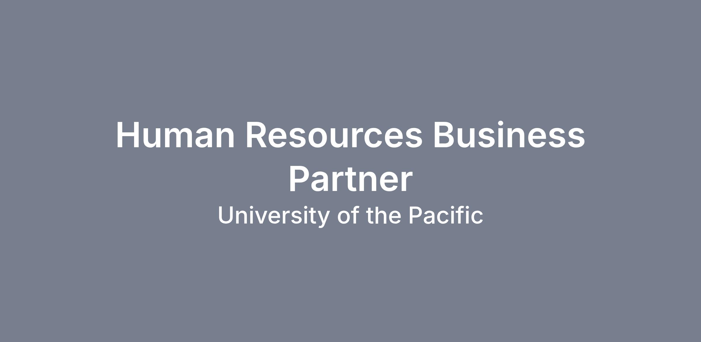 Under the direct supervision of the Director of Human Resource Partner Services, this role will be the primary point of guidance in supporting our senior leaders, managers, and employees within the designated unit/division/department for Human Resources services. The HRBP serves as a strategic and trusted advisor, supports an inclusive and dynamic culture and workforce, and pursues continuous improvement through knowledge, collaboration, and leadership. Acting as an interface between the unit and the Office of Human Resources, the HRBP provides high quality, business focused and strategic level guidance, resources and support by explaining processes related to recruitment, hiring, onboarding, benefits, compensation and classification, performance management, employee/labor relations and offboarding procedures. Under close supervision, by the Director of HR Partner Services or the Lead HRBP , incumbents perform routine duties while learning University policies and procedures and specific techniques and regulations to the broad area of human resources. As experience is gained, duties gradually become more diversified and are performed under more general supervision. University of the Pacific recognizes that diversity, equity, and inclusion is foundational to the success of our valued students and employees. We prioritize policy and decision-making that demonstrates awareness of, and responsiveness to, the ways socio-cultural forces related to race, gender, ability, sexuality, socio-economic status, etc. impede or propel students, faculty, and staff.