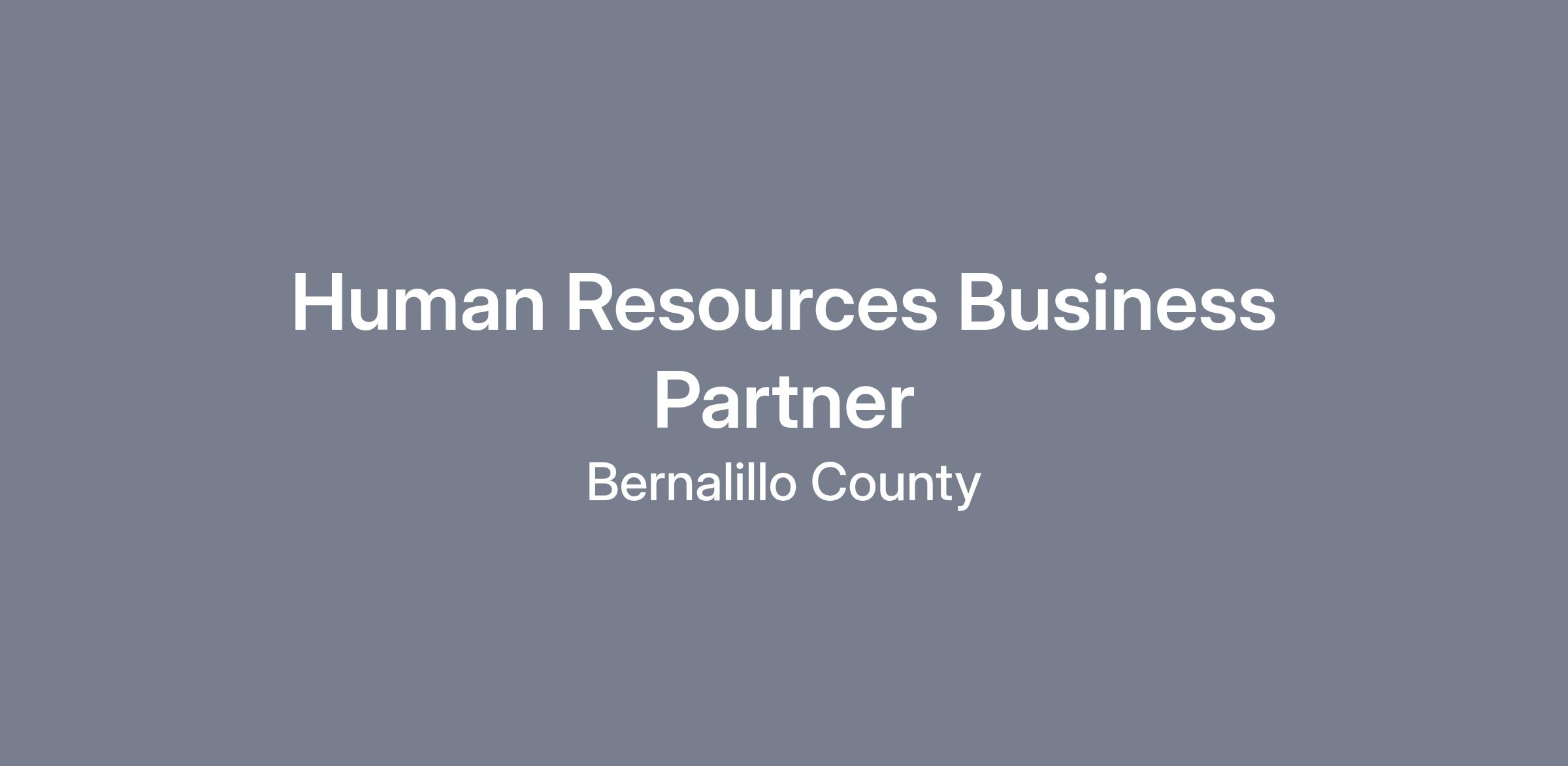 The Human Resources Business Partner performs professional and technical human resources strategic activities in their assigned areas of expertise for the Bernalillo County (BernCo) Human Resources Department. This position collaborates and provides guidance to their assigned county departments and stakeholders. Human Resources Business Partners ensure all human resources functions and solutions are addressed through strategic business collaboration in the assigned areas of expertise.