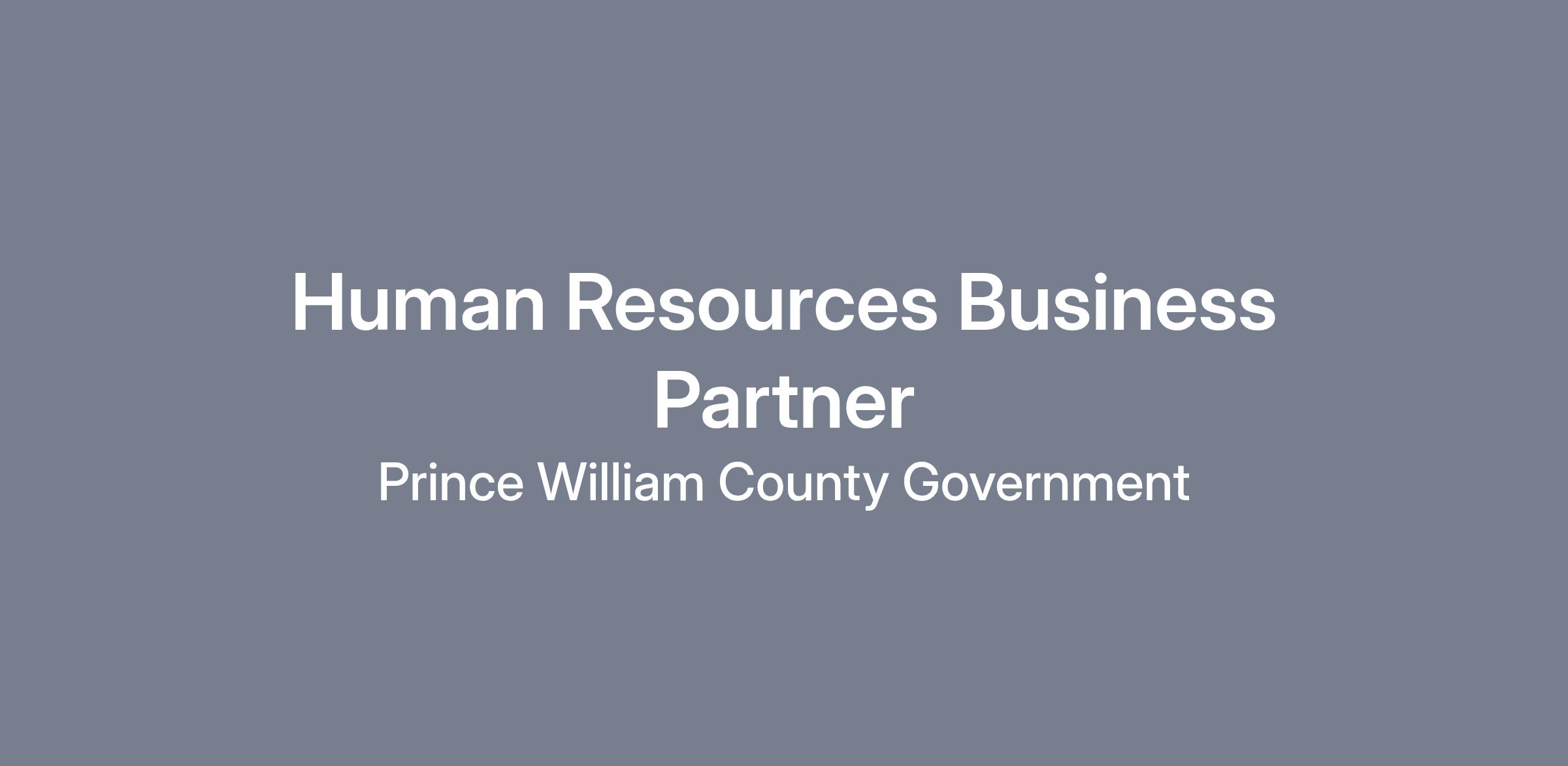 Prince William County Human Resources is excited to announce a career opportunity for a Human Resources Business Partner. If you are an experienced HR Generalist or HR Analyst, ready to elevate your career, this is your chance to step into the strategic and influential role of Human Resources Business Partner!
