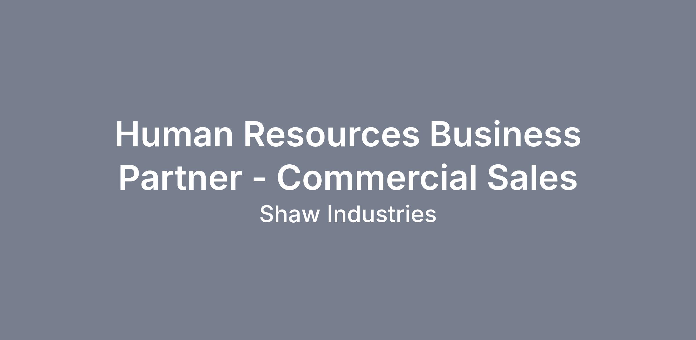 Human Resources Business Partner - Commercial SalesPosition Overview