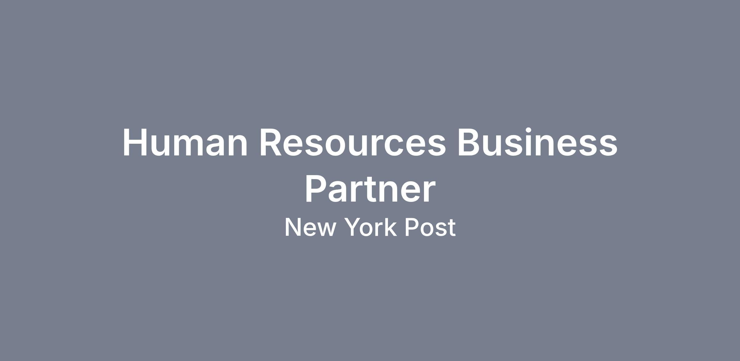 The New York Post is seeking a People Business Partner based in New York City. This is a high-impact role supporting senior leaders across the newsroom and commercial functions, with the opportunity to shape our people strategy for a fast-moving, high-profile media business.