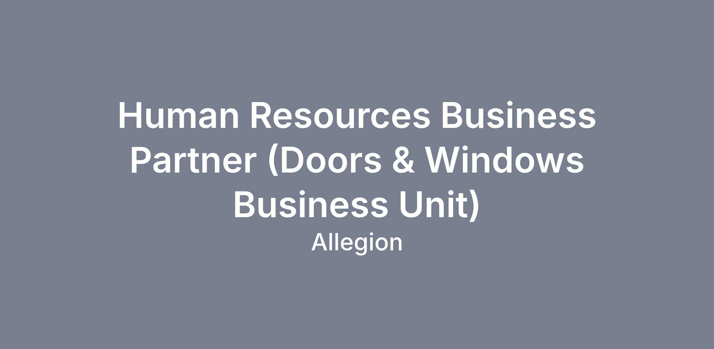 Human Resources Business Partner (Doors & Windows Business Unit)