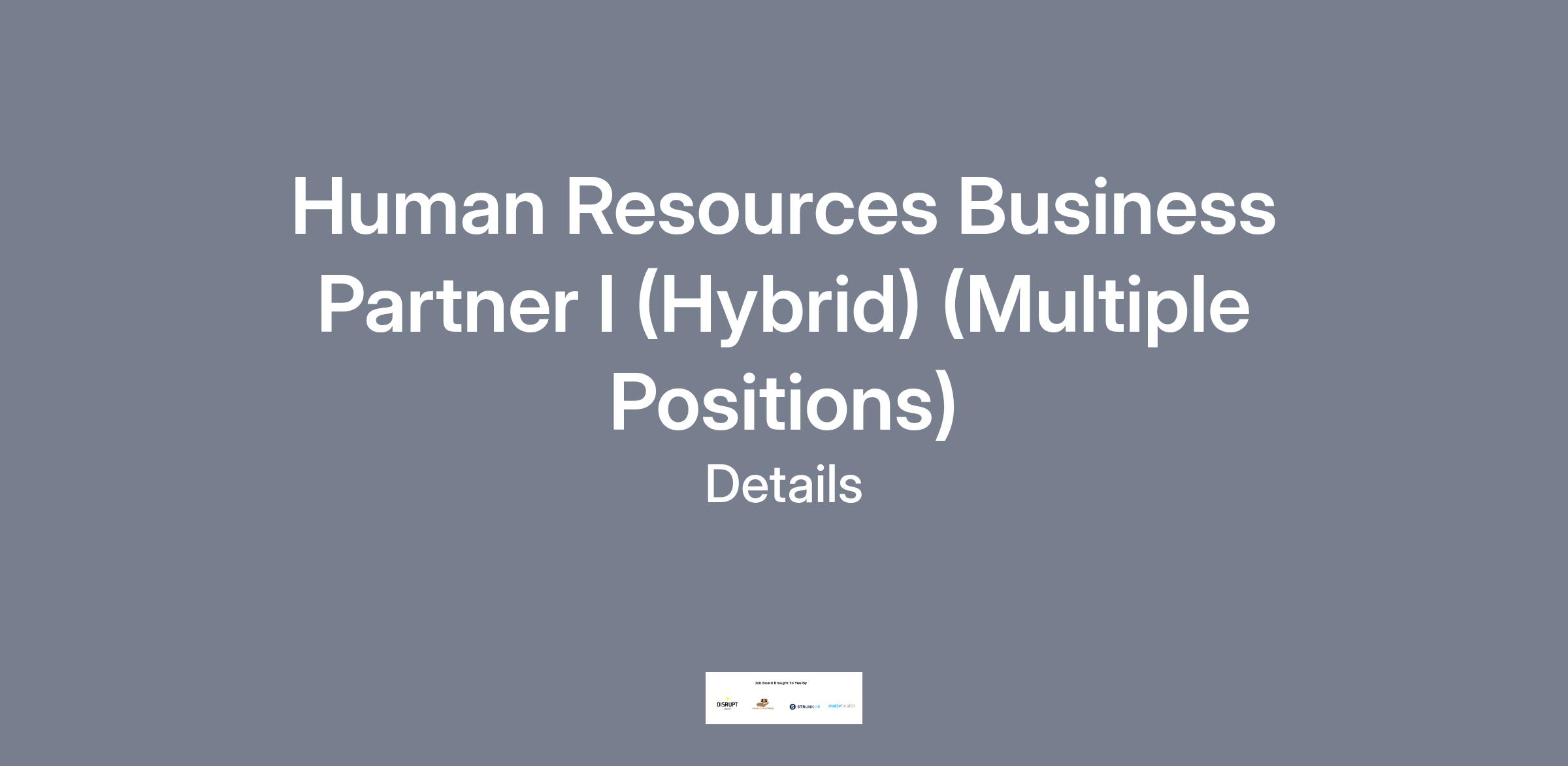 Human Resources Business Partner I (Hybrid) (Multiple Positions)