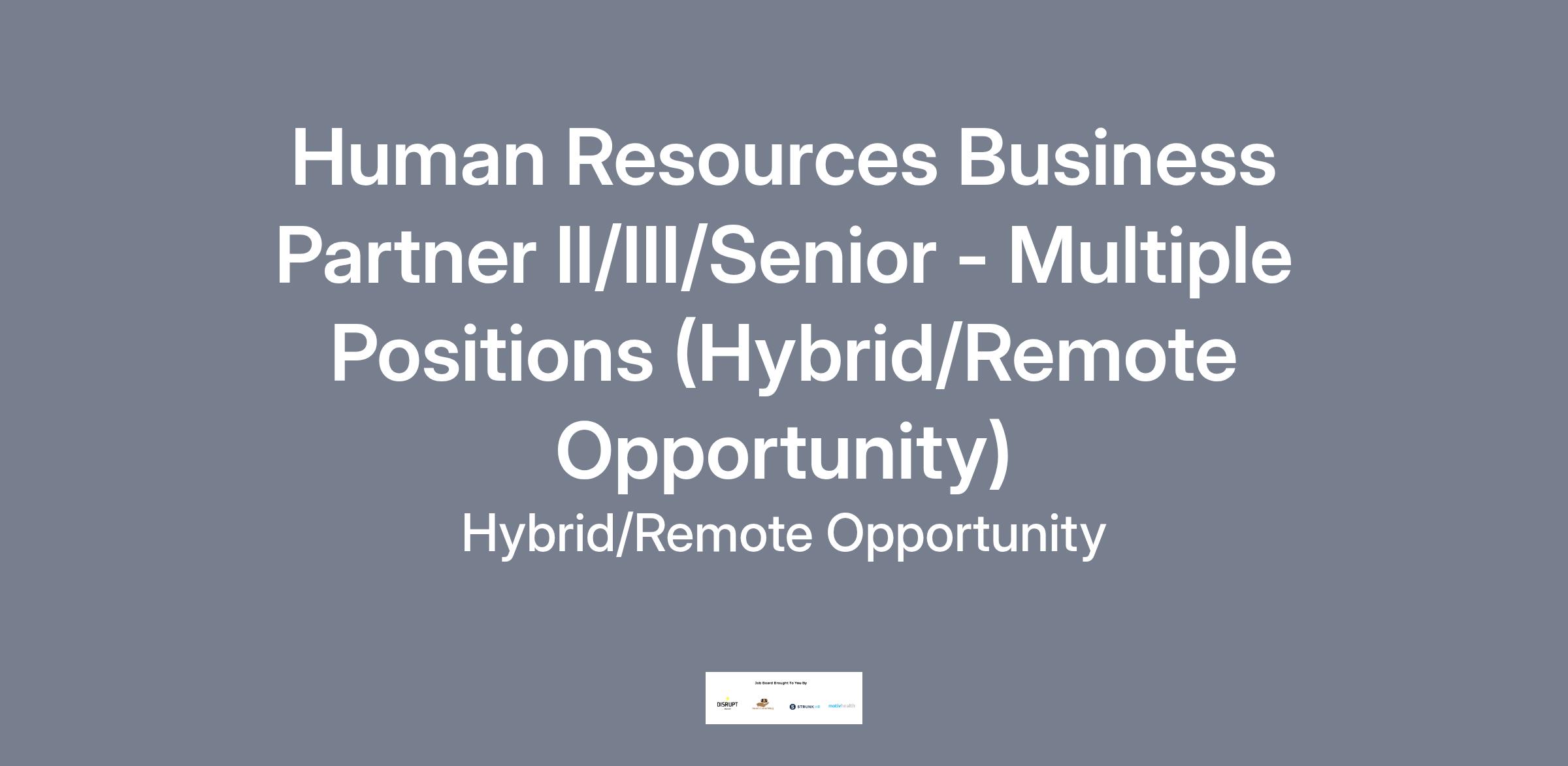 Multiple positions available at either Human Resources Business Partner II, III, or Senior levels.