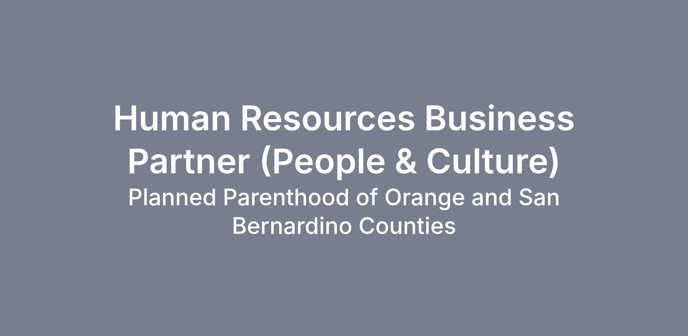 Planned Parenthood of Orange and San Bernardino Counties has a full-time opportunity for a People & Culture Business Partner in Anaheim, CA.