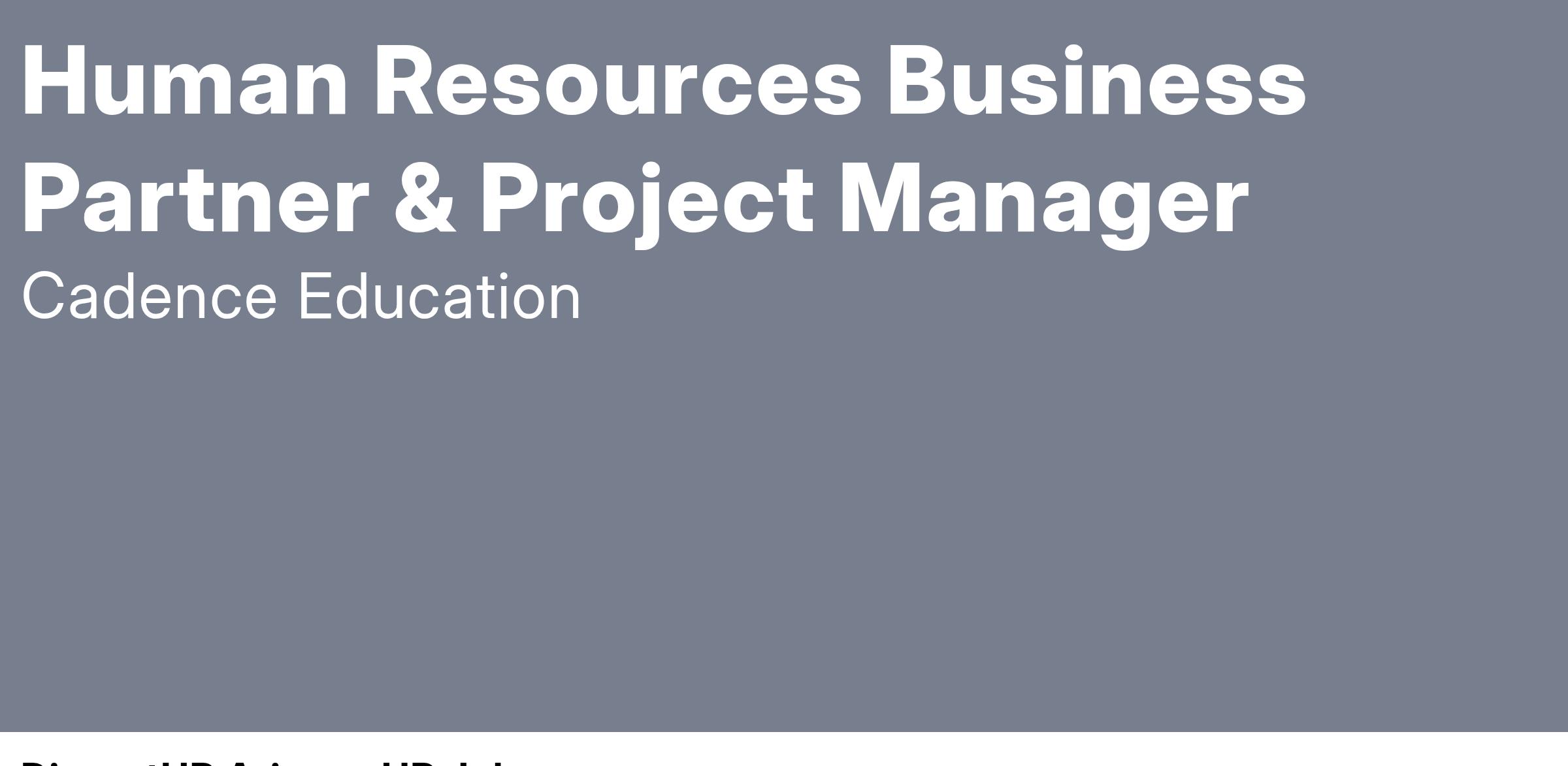 Cadence Education is currently in search of our next experienced Human Resources Business Partner & Project Manager in Scottsdale, AZ.