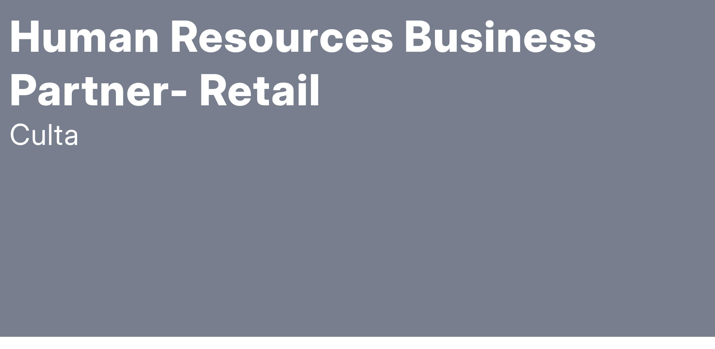 CULTA is currently looking for our next Human Resources Business Partner for Retail. The HRBP is responsible for aligning HR initiatives and functions with the objectives of our retail operations and broader organizational goals. The HRBP is a strategic liaison between the HR department and our retail operations, enabling effective decision-making and improving employee engagement. This position supports the Human Resources Director and all Human Resources related functions.