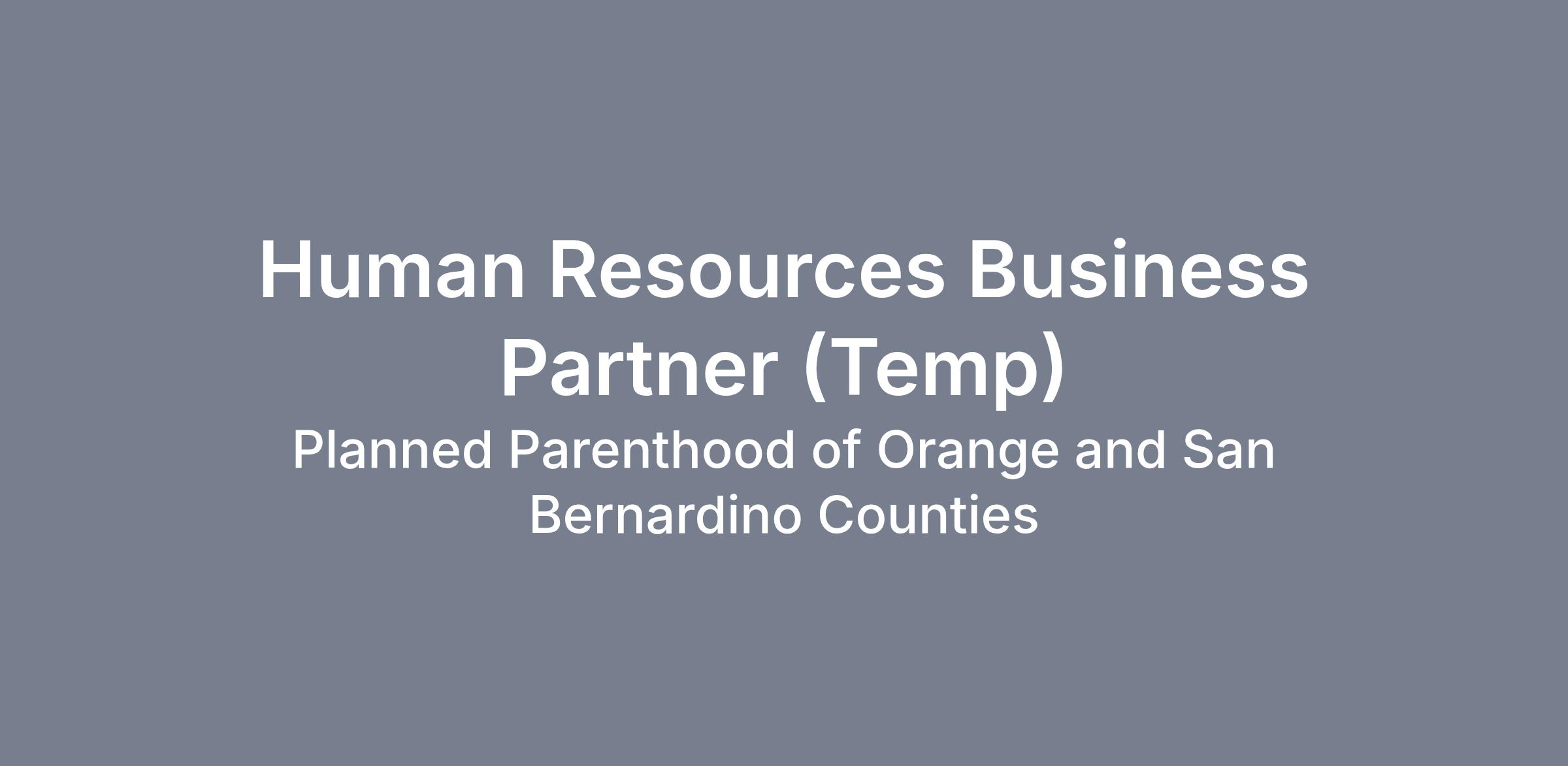Planned Parenthood of Orange and San Bernardino Counties has a full-time, temporary opportunity for a People & Culture Business Partner in Anaheim, CA.