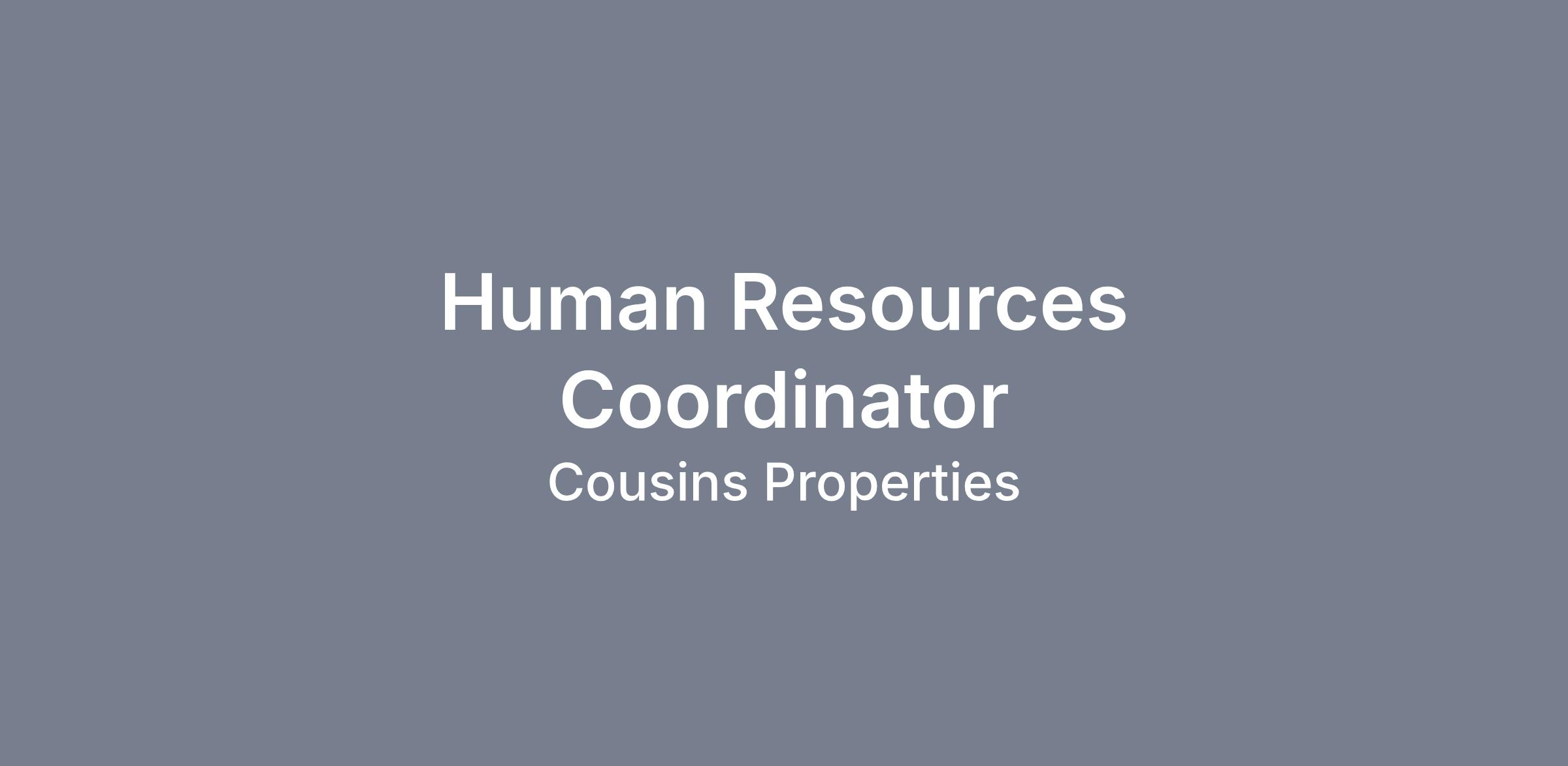 The Human Resources Coordinator performs a variety of confidential, and administrative tasks to support the overall operations of the Human Resources Department at Cousins Properties (“Cousins”). This role includes the coordination and tracking of hiring activities, assistance with onboarding processes, and preparation of essential HR documentation.