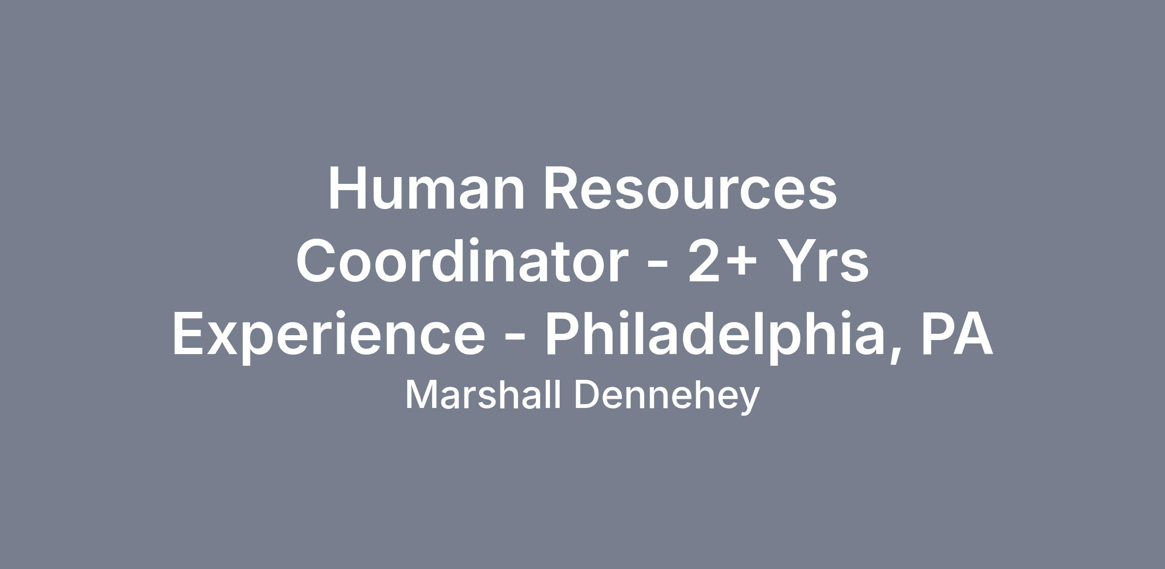 Human Resources Coordinator - 2+ Yrs Experience - Philadelphia, PA