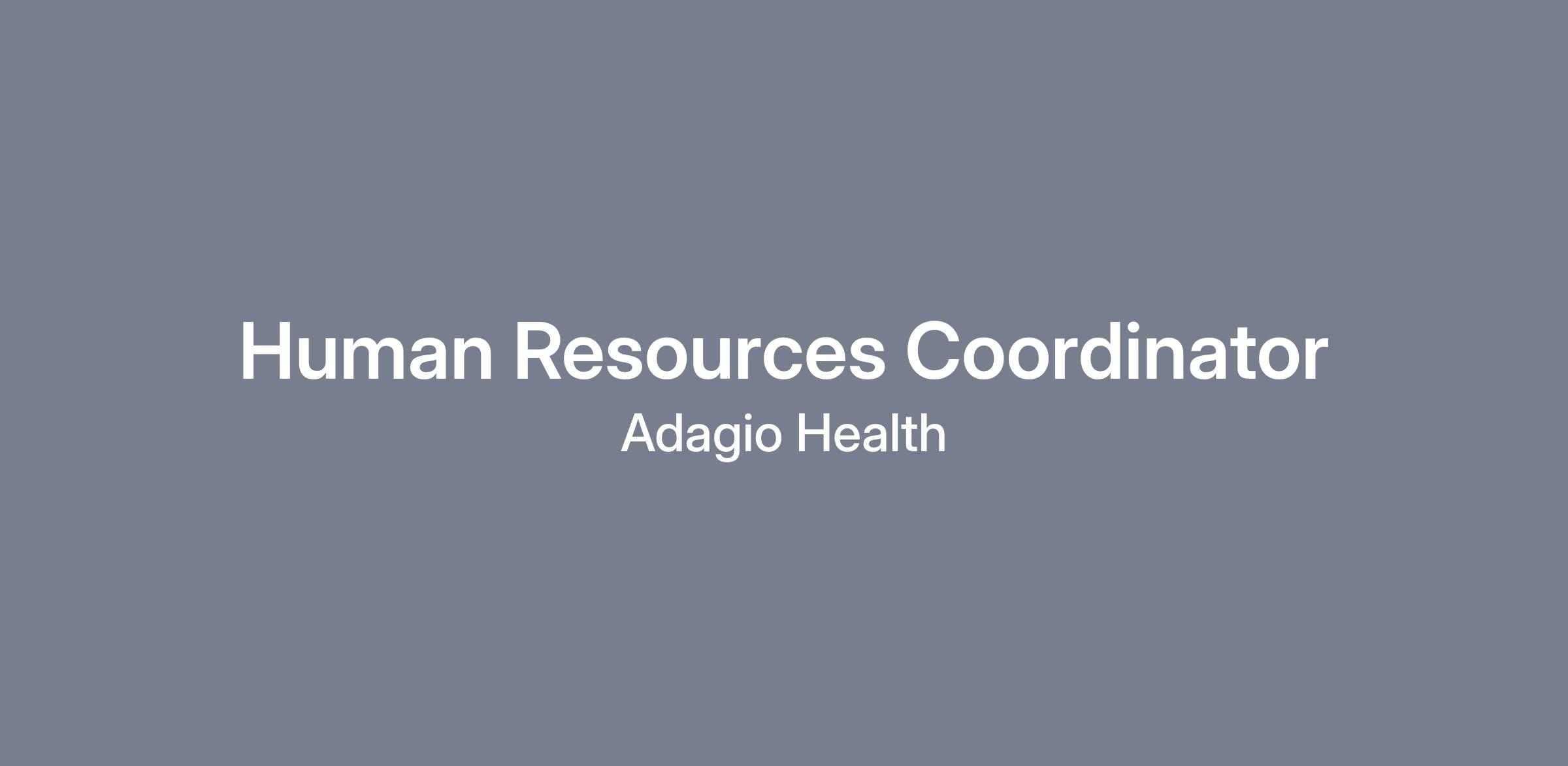 Adagio Health Inc is looking to hire a full-time Human Resources Coordinator for its Pittsburgh, PA central office.