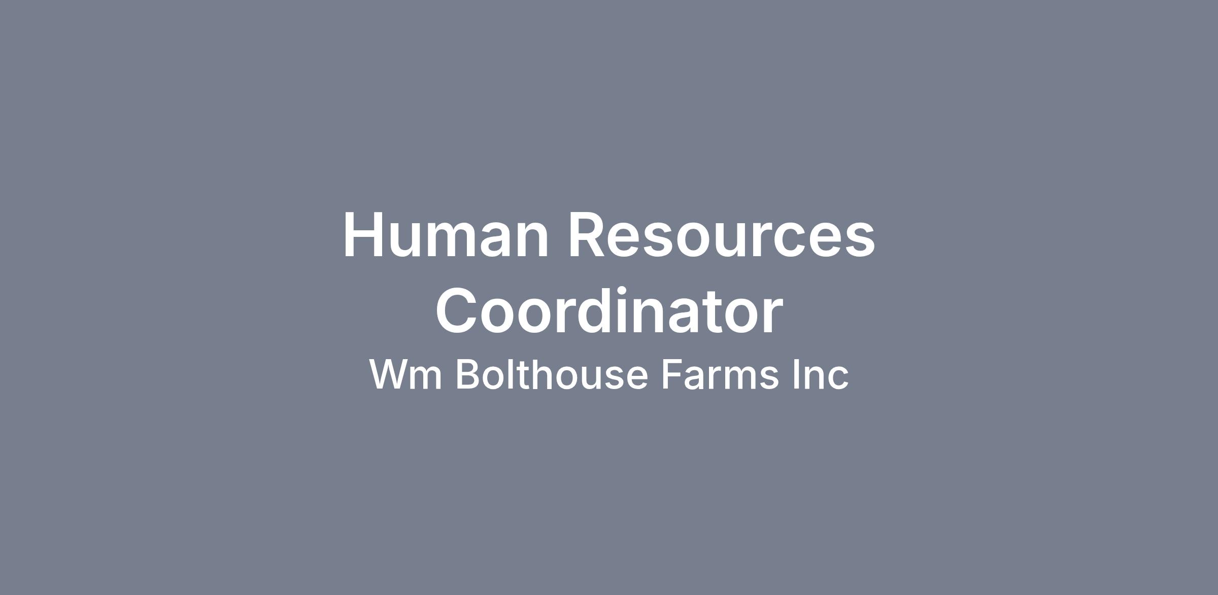 The HRIS Coordinator at Bolthouse Farms, Inc. will be under the direction of the HRIS & Compensation Manager. The position is responsible for assisting in data entry, basic reporting, and a variety of administrative tasks. The successful candidate will assist in employee data inputs and verification of entries against forms or records. Follows established procedures for updating, validating, and correcting employee records or other related HR data.