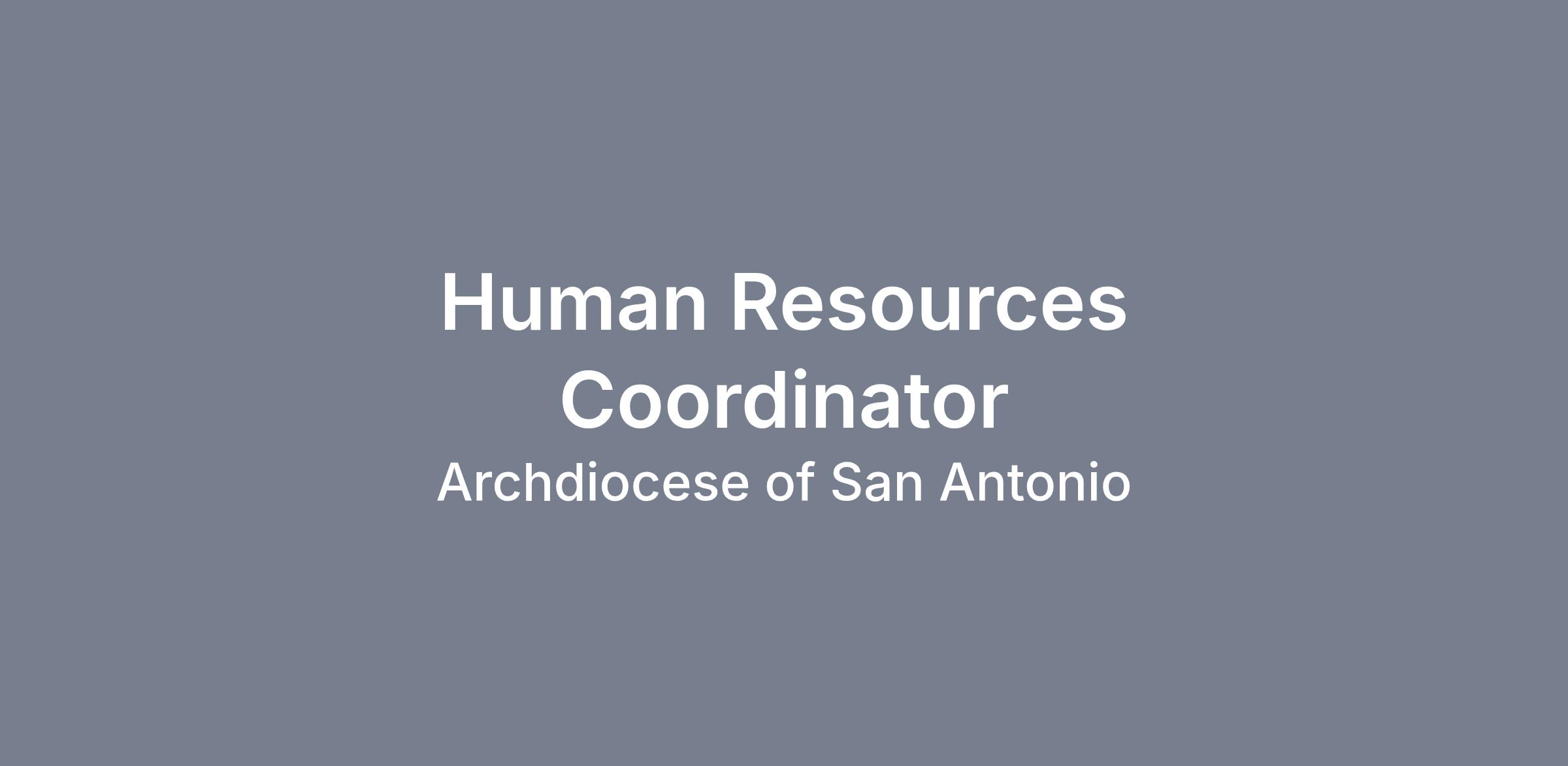 The Human Resources Coordinator is responsible for providing support to the HRBP's and leading recruiting efforts, new employee onboarding/orientation and benefits administration across the Archdiocese of San Antonio.