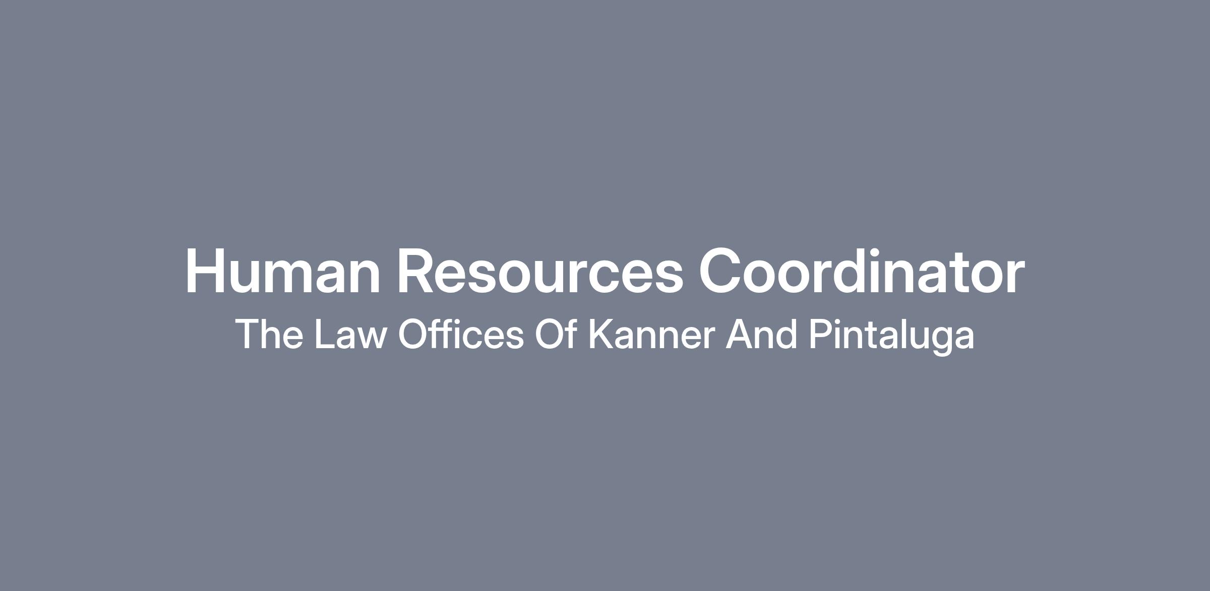 Kanner & Pintaluga, a dynamic and rapidly growing personal injury and property damage law firm, seeks a highly motivated and passionate HR Coordinator to join our team in Boca Raton, Florida.