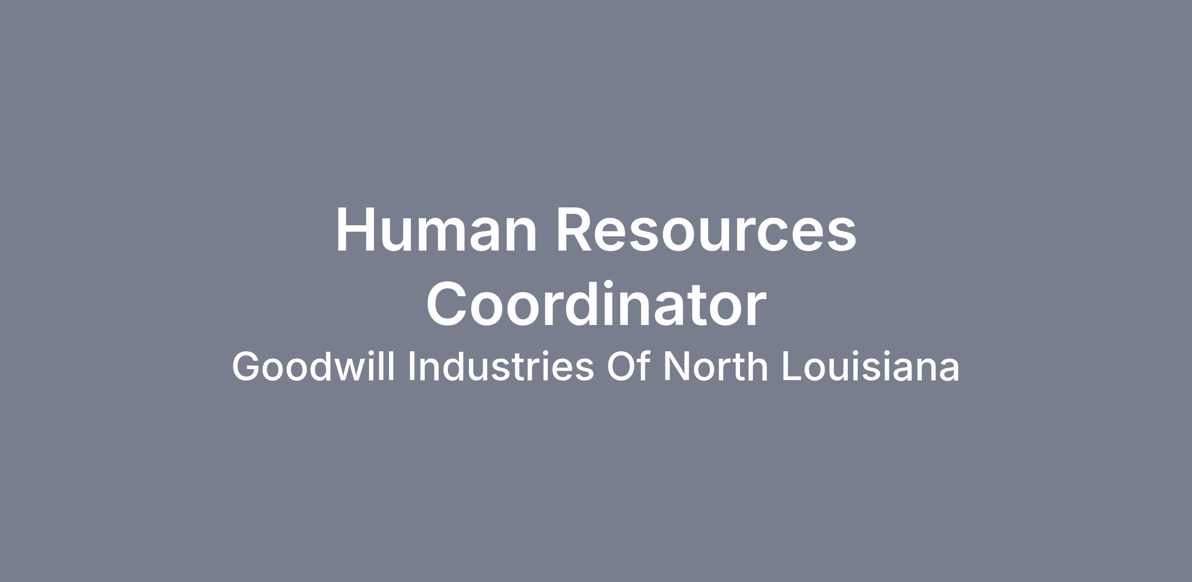 The Human Resources Coordinator supports the day-to-day administrative operations of the Human Resources department for Goodwill Industries of North Louisiana, Inc. This position manages employee onboarding, personnel documentation, HR recordkeeping, and volunteer coordination.