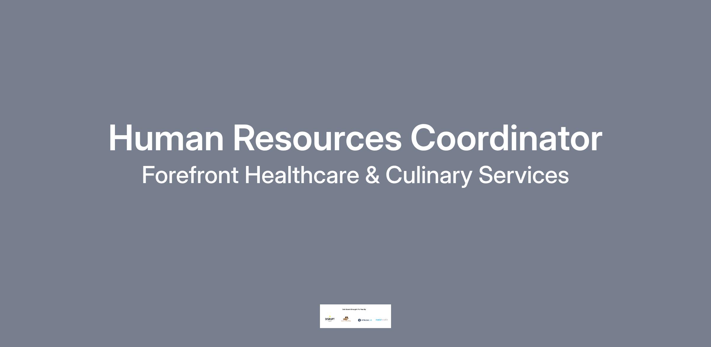 HR Coordinator – Forefront Healthcare & Support Services