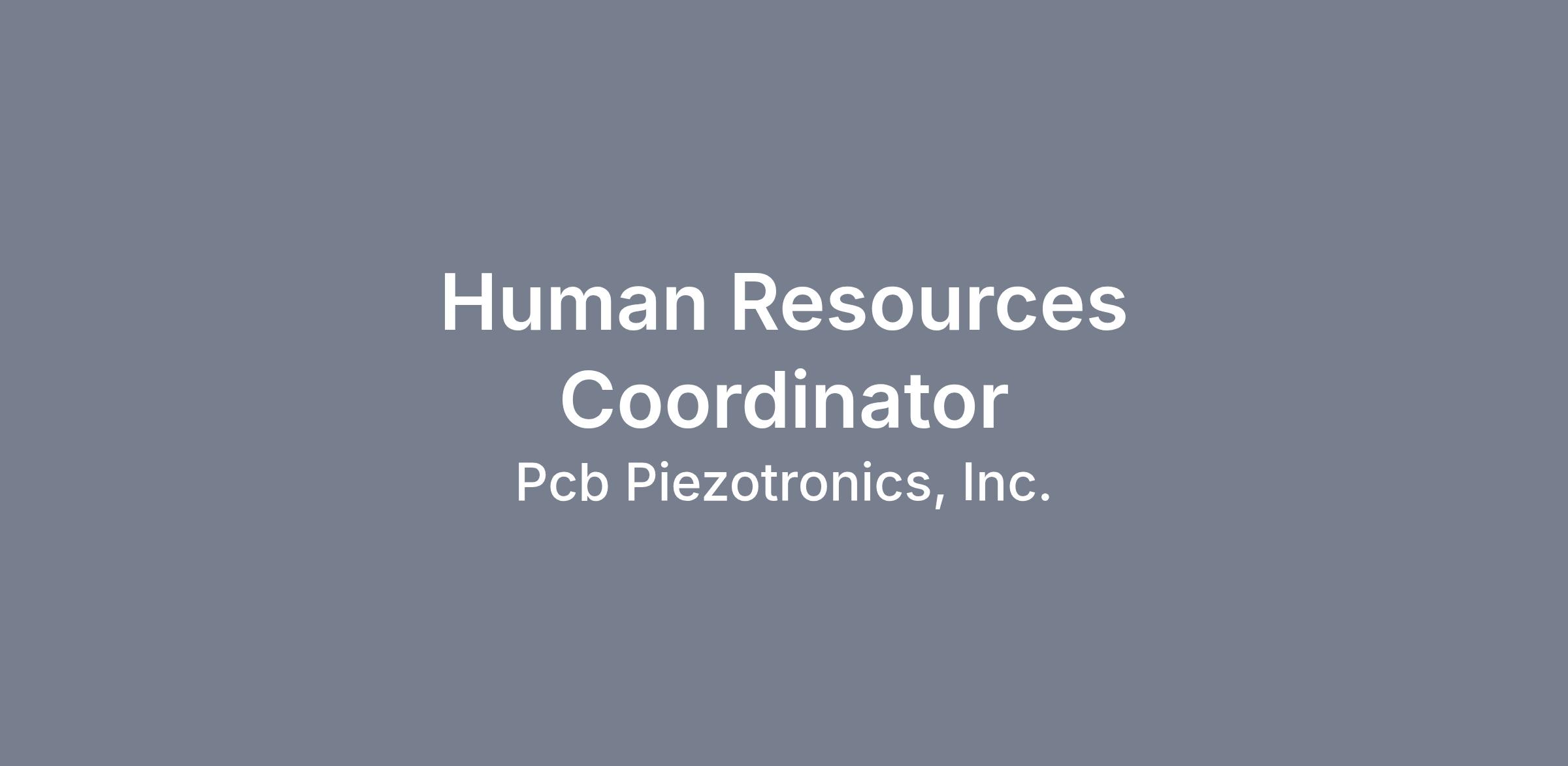 As a Human Resources Coordinator with PCB Piezotronics, Inc., you will support the Human Resources department on an administrative level, including maintaining employee records, training, performance management, and communication. Assist the payroll and benefit functions with overseeing certain programs.