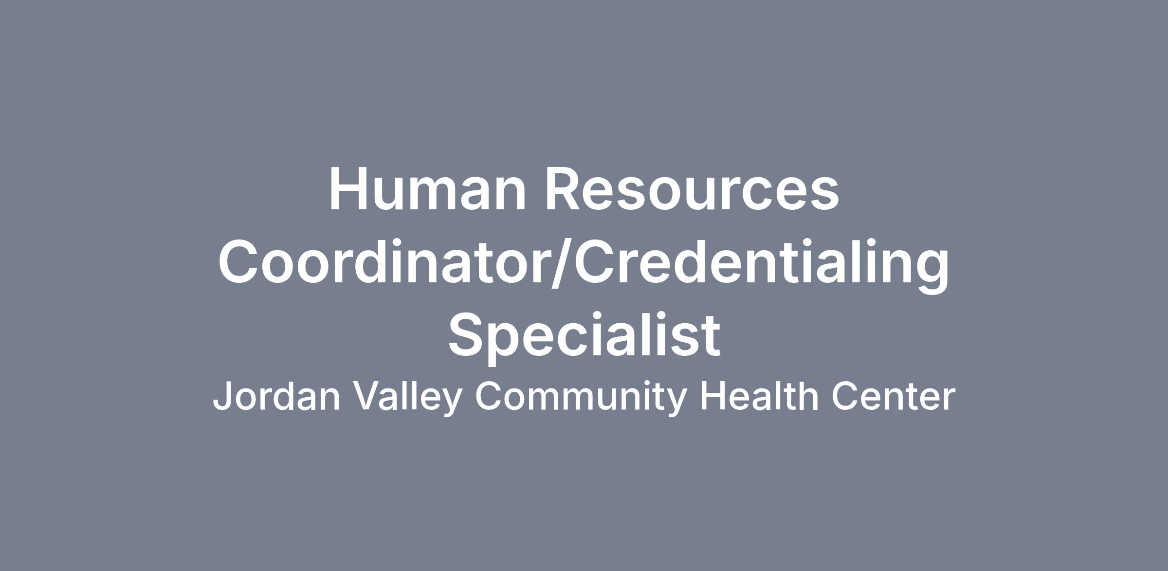 The Credentialing Specialist/HR Coordinator will support the organization in the following functional areas: new hire process and onboarding, HRIS, training and development, organization development, administration, credentialing, and employment activities. This role is responsible for all aspects of credentialing, re-credentialing and privileging processes for all medical, dental and behavioral health providers. Responsible for ensuring providers are credentialed, appointed, and privileged with health plans for all relevant Jordan Valley locations and local hospitals as appropriate. Maintain up-to-date data for each provider in credentialing databases and online systems; and ensure timely renewal of licenses and certifications.