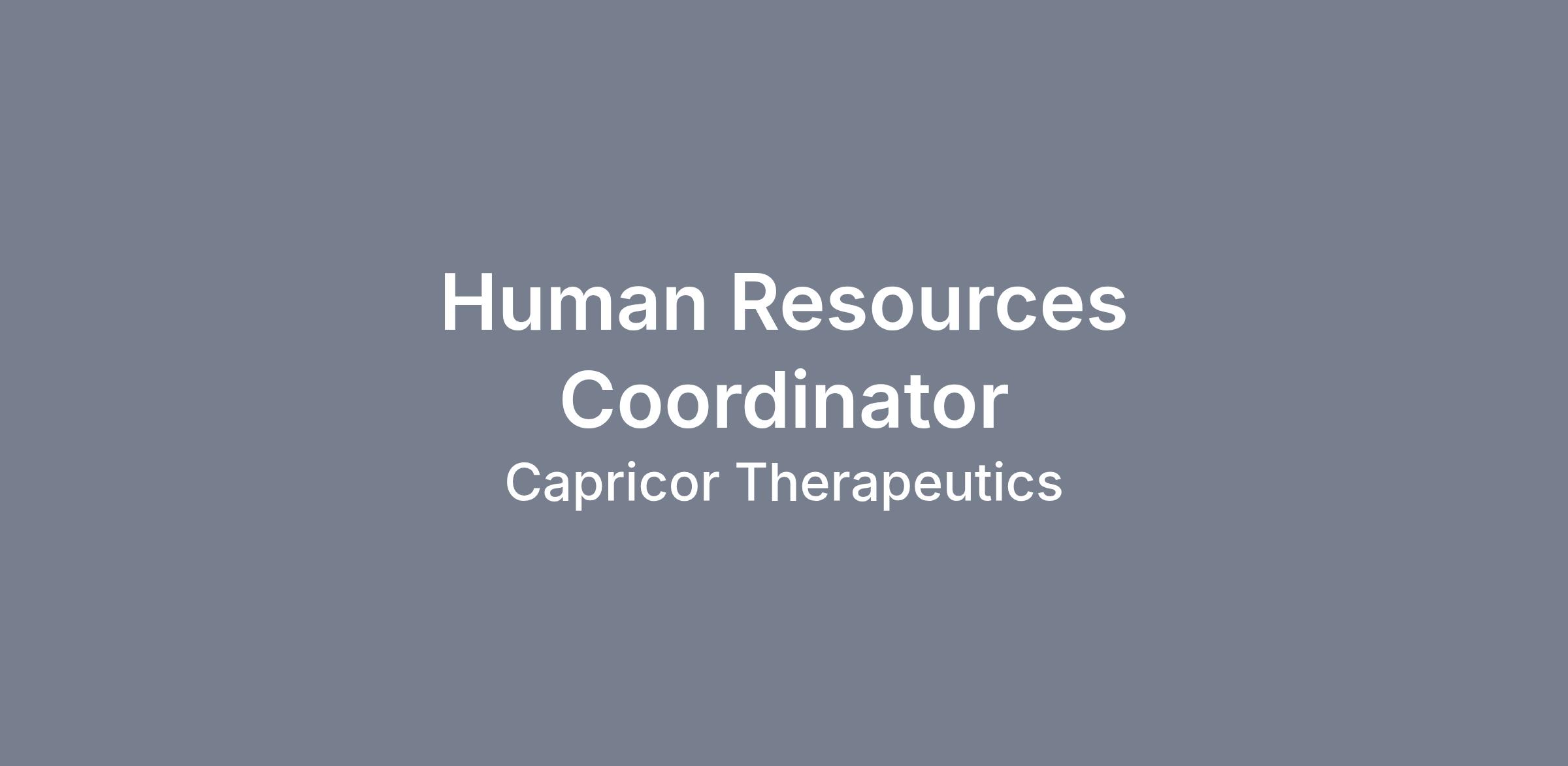 The HR Coordinator at Capricor Therapeutics will serve as the central point of contact for the employee lifecycle, supporting recruitment coordination, onboarding, record maintenance, and compliance efforts in a fast-growing biotech environment. By ensuring accurate documentation, seamless coordination of HR processes, and responsive support to employees and managers, this role plays a vital part in strengthening people operations, fostering a positive and inclusive workplace culture, and enabling the company’s mission-driven growth as we advance our pipeline toward potential approvals and commercialization.