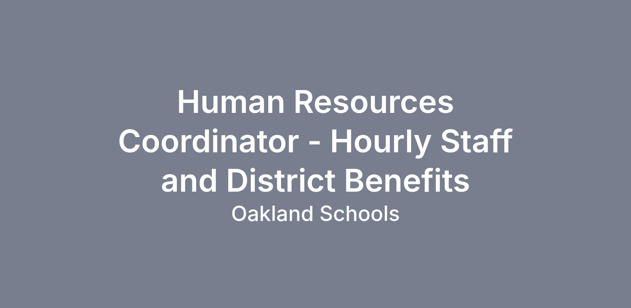 Human Resources Coordinator - Hourly Staff and District Benefits