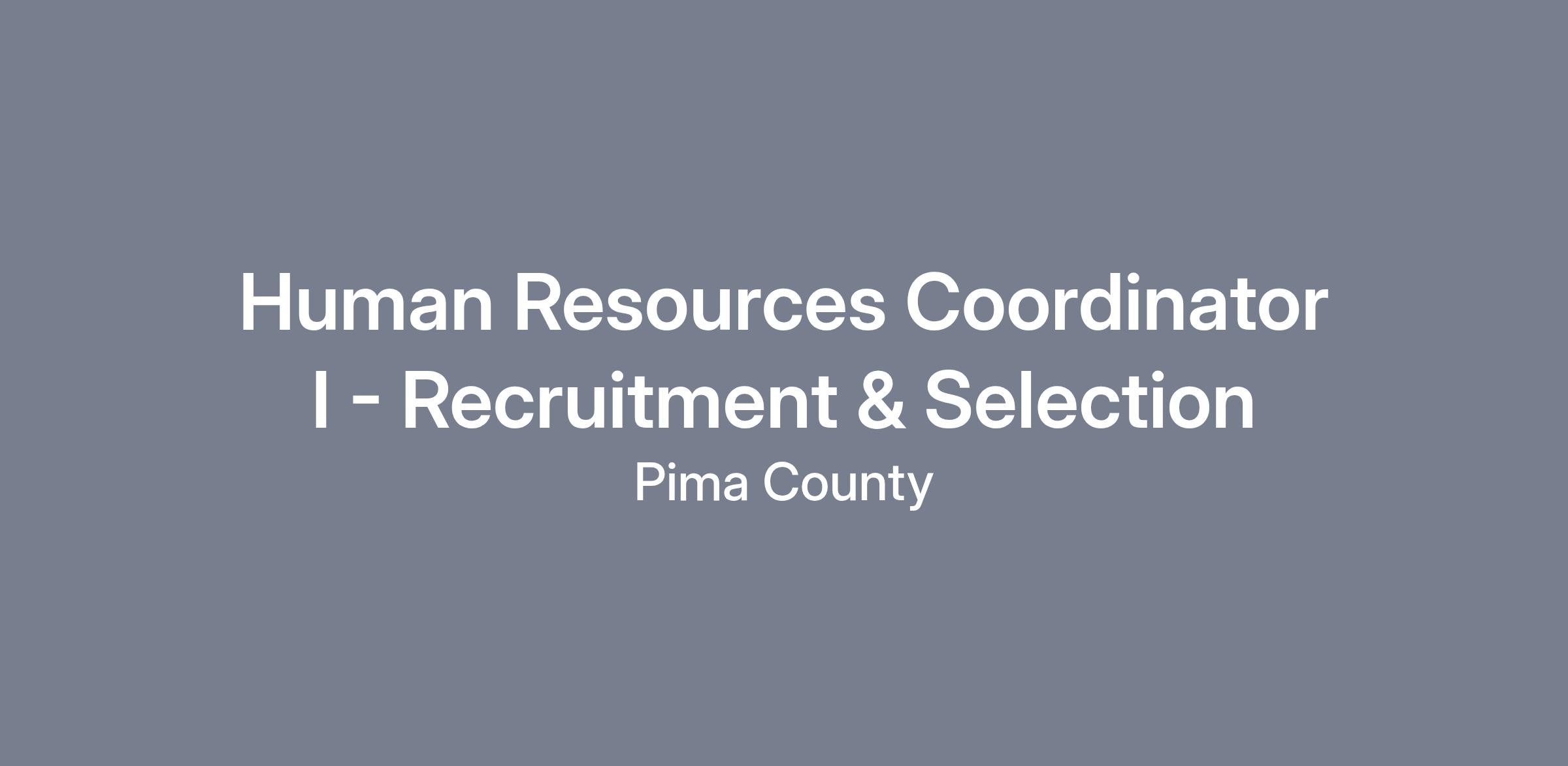 Pima County is searching for a Human Resources Coordinator I to join our Recruitment and Selection team to support our client departments, employees, and diverse community. As a recruitment coordinator, you will evaluate applicants, craft compelling job announcements, actively participate in recruitment strategy development, and offer valuable guidance on employment opportunities.