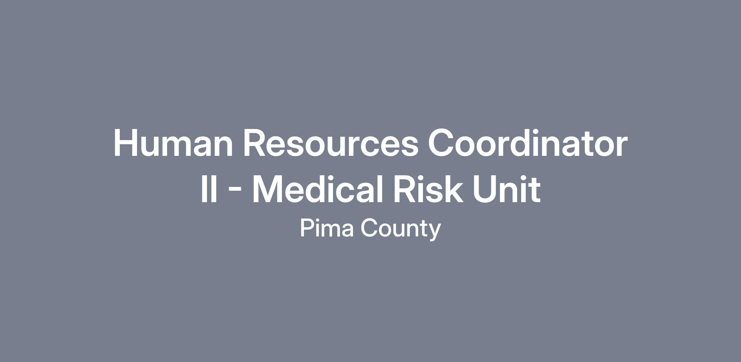 Pima County Human Resources is seeking a skilled professional Coordinator II for our Medical Risk Unit. In this position, you will participate in, track, and evaluate open filings, input data, download information, access different systems and platforms to retrieve and store information, and to complete tasks. Knowledge of occupational health practices including pre-employment health screening processes, workers’ compensation and ADA practices and principles is preferred, as well as the ability to review, edit, and compile documents and templates, and work within established County policies and mandated guidelines. Candidates who have proficient knowledge of Microsoft Word, Excel, Outlook, and case management software are encouraged to apply.
