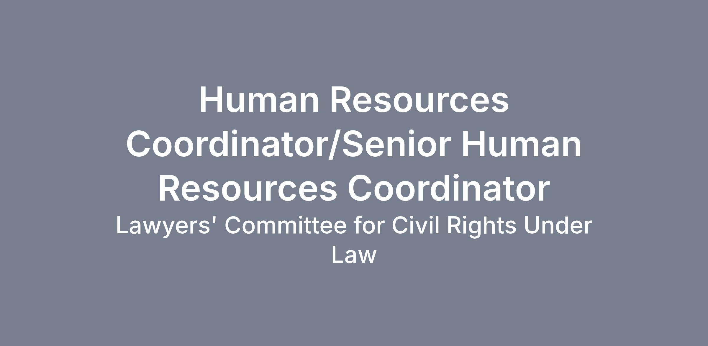 Job Title: Human Resources Coordinator/ Senior Human Resources Coordinator Location: Washington, DC Job Type: Full-Time Union Affiliation: Non-Union Accountable to: Human Resources Manager