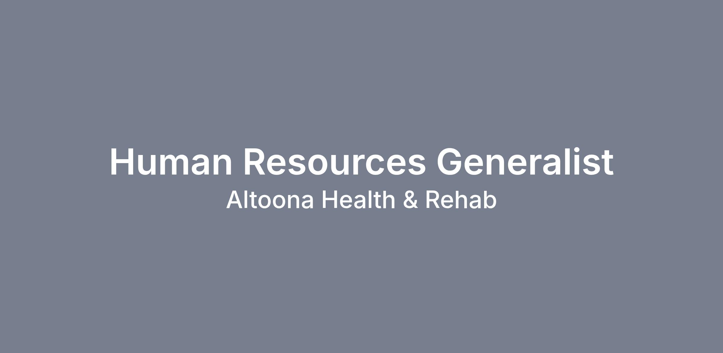 Altoona Health and Rehab offers a supportive work environment and opportunities for professional growth and development. If you are a proactive and customer-focused individual with a passion for human resources, we encourage you to apply for the Human Resources Generalist position and become part of our team dedicated to excellence in senior care.